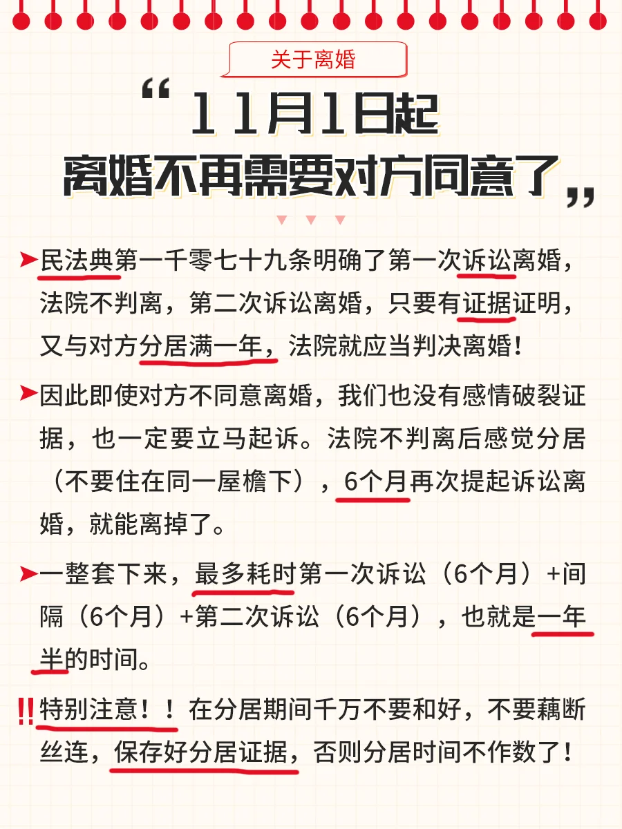 [失望的R][失望的R][失望的R]如果我丈夫拖了很久不肯離婚,我該怎么辦?我真的活不下去了,而且沒(méi)有證據(jù)表明我情緒崩潰了。即使我向法院起訴,我也不會(huì)離婚。我們?cè)撛趺崔k?[哭著挑釁R] 事實(shí)上,每個(gè)人都不必那么擔(dān)心。《民法典》施行以來(lái),離婚不再需要征得對(duì)方同意??? ? 《民法典》第1079條明確,在第一次離婚訴訟中,法院不得裁定離婚。在第二次離婚訴訟中,只要有證據(jù)證明對(duì)方已經(jīng)分居至少一年,法院就應(yīng)該判決離婚! ? 因此,即使對(duì)方不同意離婚,我們也沒(méi)有情緒崩潰的證據(jù),必須立即起訴。如果法院不裁定離婚,并感到分居(不住在同一屋檐下),6個(gè)月后再次提起離婚訴訟可能會(huì)導(dǎo)致離婚。一套完整的訴訟可能需要長(zhǎng)達(dá)一年半的第一次訴訟(6個(gè)月)+間隔(6個(gè)月中)+第二次訴訟(六個(gè)月)。 ??? 特別注意??!在分居期間,不要和解,不要割斷關(guān)系,并保留好分居的證據(jù),否則分居時(shí)間將不計(jì)算在內(nèi)! ? 此外,如果夫妻之間在共同財(cái)產(chǎn)、共同債務(wù)、監(jiān)護(hù)權(quán)或子女撫養(yǎng)費(fèi)等方面存在爭(zhēng)議,在提出離婚之前,需要委托專業(yè)律師協(xié)助。只有在對(duì)方?jīng)]有戒備的情況下,我們才能方便地收集財(cái)產(chǎn)、過(guò)錯(cuò)等其他證據(jù)。
