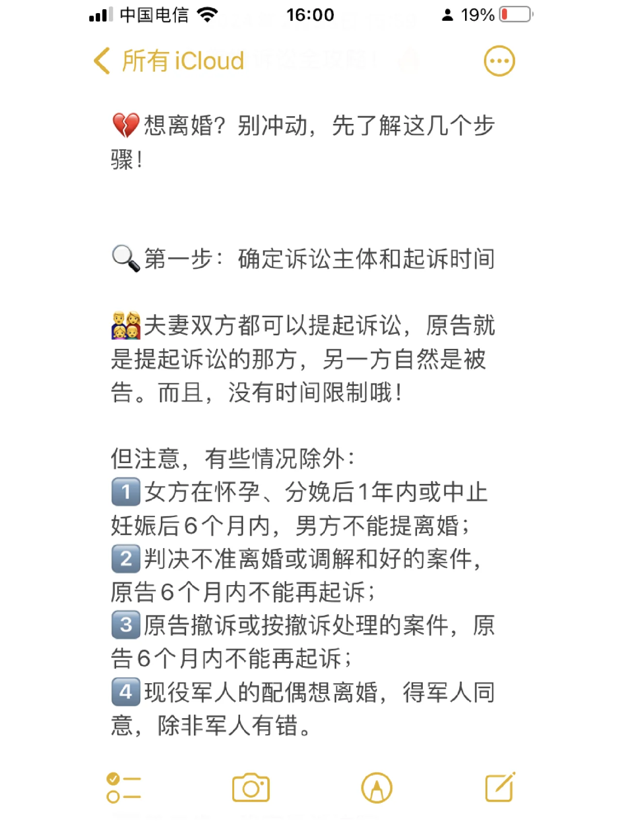 ? 離婚訴訟的完整指南??? ? 想要離婚嗎?不要沖動(dòng),先了解這些步驟! ? 第一步:確定訴訟主體和起訴時(shí)間 ? ? ? ? 夫妻雙方都可以提起訴訟,原告是提起訴訟的一方,另一方自然是被告。而且沒有時(shí)間限制! 但是,請(qǐng)注意,也有一些例外情況: 一?? 婦女在懷孕或分娩后一年內(nèi)或終止妊娠后六個(gè)月內(nèi)不能與男子離婚; 二?? 在不允許離婚或調(diào)解的情況下,原告在6個(gè)月內(nèi)不能提起訴訟; 三?? 如果原告撤訴或按撤訴處理,原告在6個(gè)月內(nèi)不能再次起訴; 四?? 現(xiàn)役軍人的配偶想要離婚,必須征得軍人的同意,除非軍人有過錯(cuò)。 ? 第二步:確定上訴法院 ? 被告有經(jīng)常居住地,應(yīng)當(dāng)?shù)疆?dāng)?shù)胤ㄔ禾崞鹪V訟; ? 被告人沒有經(jīng)常居住地的,應(yīng)當(dāng)?shù)綉艏诘胤ㄔ禾崞鹪V訟; ? 雙方均已離開戶籍一年以上,到原告提起訴訟時(shí)被告居住的法院; ? 被告不在中國(guó)或者下落不明的,應(yīng)當(dāng)?shù)皆娼?jīng)常居住地或者戶籍所在地法院辦理。 ?? 第三步:撰寫并提交民事申訴 ? 明確原被告信息,列出訴訟請(qǐng)求,如解除婚姻、子女監(jiān)護(hù)、財(cái)產(chǎn)分割等; ? 無過錯(cuò)方作為原告,應(yīng)當(dāng)同時(shí)提出損害賠償請(qǐng)求; ? 作為被告的無過錯(cuò)方不同意離婚、不要求損害賠償?shù)模梢栽陔x婚后一年內(nèi)另行提起訴訟; ? 簡(jiǎn)要說明婚姻狀況、子女情況、離婚原因,提出子女、財(cái)產(chǎn)等索賠要求; ? 準(zhǔn)備身份證、居住證、結(jié)婚證、出生證、房產(chǎn)證等相關(guān)材料一式兩份,提交法院。 ? 第四步:立案受理案件,完成申訴和辯護(hù)服務(wù) ? 在提交申訴和附件材料后,如果法院同意調(diào)解,法院將進(jìn)行訴前調(diào)解; ? 如果不符合備案條件,將通知其進(jìn)行更正。如果仍不符合要求,則裁定不予受理; ? 立案后發(fā)現(xiàn)不符合起訴條件的,裁定駁回起訴; ? 被告應(yīng)當(dāng)自收到申訴之日起15日內(nèi)提出答辯;不求婚并不影響審判。 ? 提示 ? 離婚沒有時(shí)間限制,但在某些情況下有特殊規(guī)定; ? 重要的是選擇一個(gè)適合起訴的法院,該法院應(yīng)根據(jù)被告的居住地來確定; ? 申訴應(yīng)當(dāng)簡(jiǎn)明扼要,列出訴訟請(qǐng)求和事實(shí)原因; ? 立案受理后,要注意提交調(diào)解書和答辯書,確保程序順利進(jìn)行。 ? 離婚不容易,珍惜它很重要。希望這些信息能幫助到你,并祝你一切順利???
