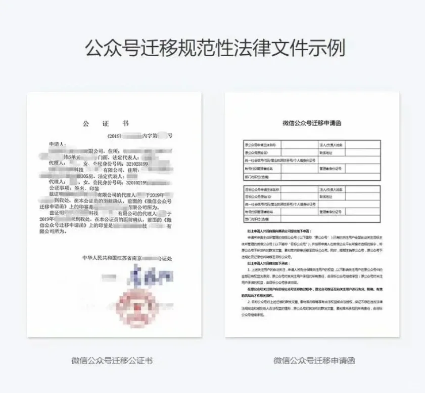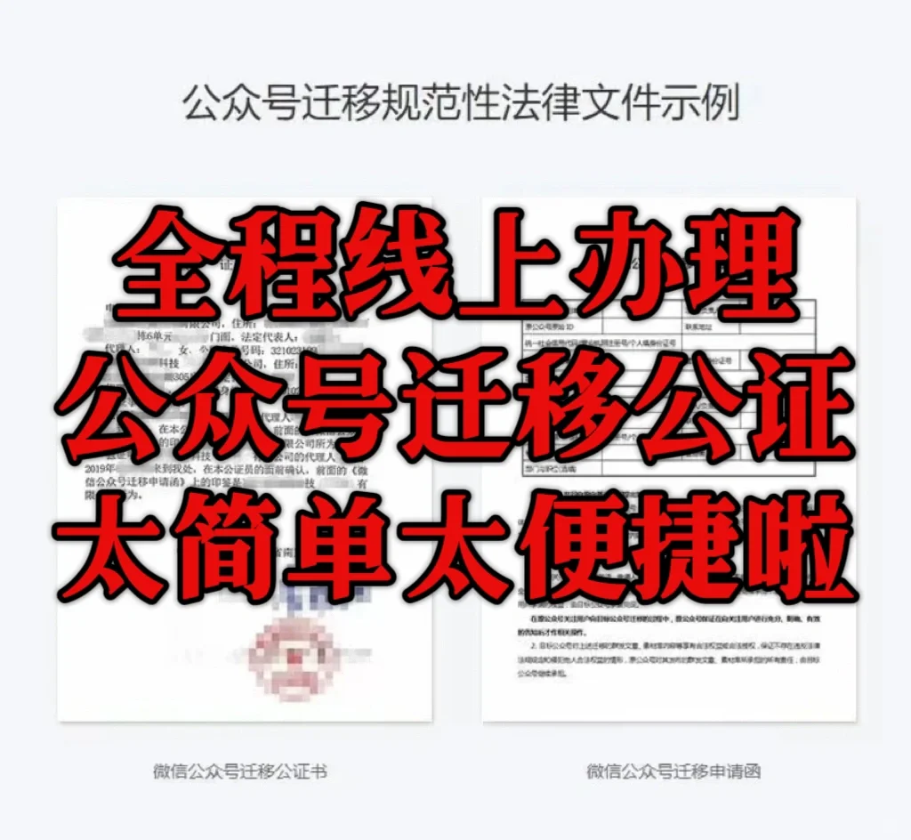 在線公證 撤銷原實(shí)體所需的材料 1、公眾號(hào)企業(yè)身份證原件正反面照片(如有股東提供所有股東身份證正反面照片) 2.目標(biāo)公眾號(hào)的營(yíng)業(yè)執(zhí)照和企業(yè)身份證正反面照片 3.原公眾號(hào)和目標(biāo)公眾號(hào)的背景設(shè)置截圖 4.移民信的Word電子版無需蓋章,只需填寫必要的信息即可 5.原始法人和所有股東(如有),以及目標(biāo)法人可以掃描他們的面部進(jìn)行電子簽名 步驟: 1.在v上搜索“不可避免的公共認(rèn)證” 2.進(jìn)入小程序,點(diǎn)擊“公眾號(hào)遷移” 3、“公眾號(hào)拆遷公證員”的辦理 4.下單后,公證員會(huì)立即與您聯(lián)系,協(xié)調(diào)要求和材料 微信公眾號(hào)轉(zhuǎn)讓申請(qǐng)書公證成為當(dāng)下一個(gè)熱門公證問題。公證用于證明公眾號(hào)的轉(zhuǎn)移,并為后續(xù)的權(quán)益糾紛提供保障。一般來說,公眾號(hào)遷移申請(qǐng)函可以在公證處辦理,也可以直接在網(wǎng)上辦理,但兩者也有區(qū)別。5.公證可在一個(gè)工作日內(nèi)完成,電子版可發(fā)送至申請(qǐng)人賬戶。只有電子版才能提交給后臺(tái)審批。 總之,公眾號(hào)遷移公證書提供了更高級(jí)別的證明和保護(hù),這對(duì)遷移雙方來說都是非常必要的。如果公眾號(hào)被移動(dòng)或出售,建議您首先進(jìn)行公證。在申請(qǐng)公證證書時(shí),需要提供一定的相關(guān)信息和材料。為確保申請(qǐng)順利通過,應(yīng)仔細(xì)審查當(dāng)?shù)毓C處的具體要求,并前往現(xiàn)場(chǎng)填寫申請(qǐng)表并提供相關(guān)證明材料。