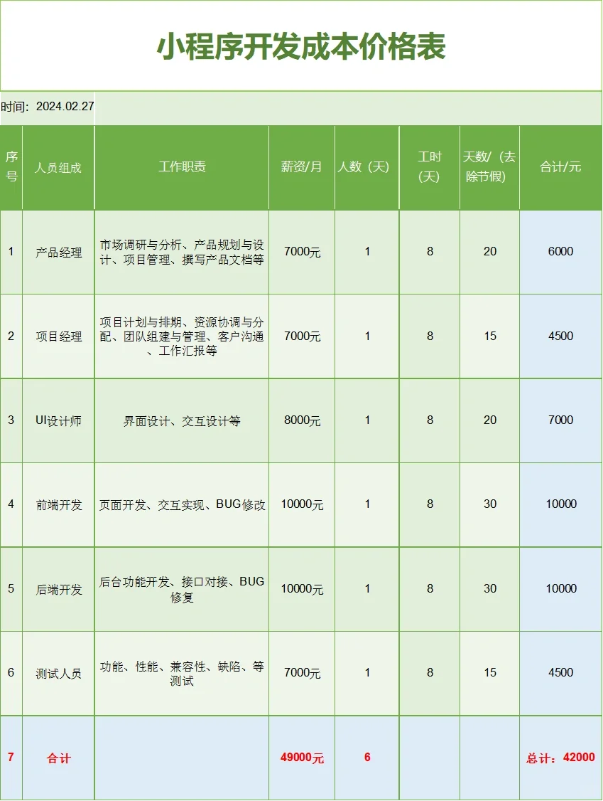 小程序開發(fā)需要多少錢小程序開發(fā)成本表