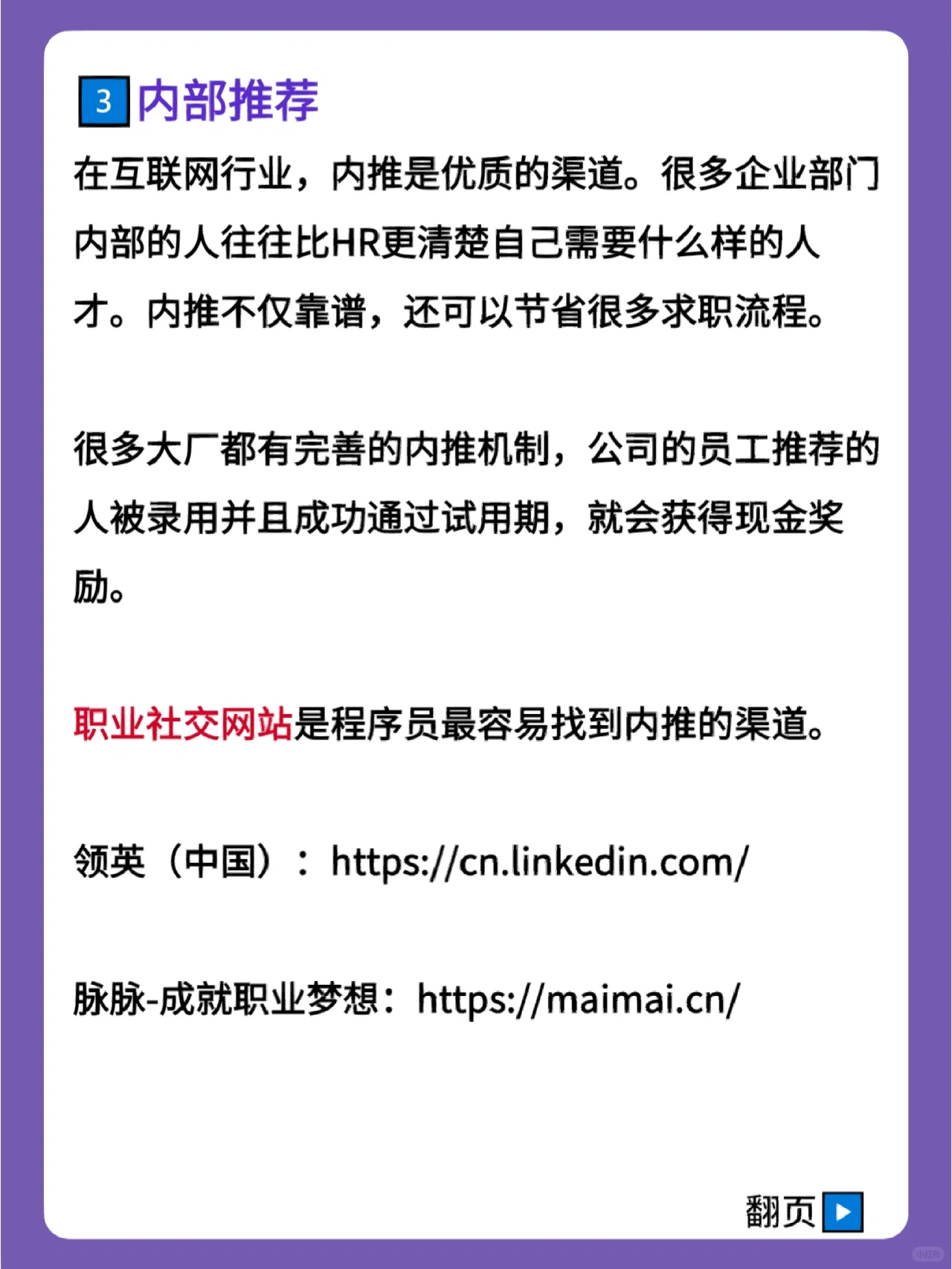 ? 俗話說,黃金、白銀和四個月是求職的高峰期??, 然而,今年的情況可能略有不同。企業(yè)普遍在今年早些時候復(fù)工,2月份已經(jīng)引入了新的職位。每個人都必須抓住這個求職的黃金時期?,現(xiàn)在就做好準備~ - 對于程序員來說,有哪些有用的求職網(wǎng)站?今天,我們將分享7個高效便捷的求職渠道??焖偈占痆Star R],并依靠他們在年后提交簡歷! - 一? 垂直求職網(wǎng)站 例如,萬馬職場是一個以程序員為核心的求職網(wǎng)站,涵蓋前端、后端、測試、運維、數(shù)據(jù)分析、人工智能、新能源汽車等熱門領(lǐng)域,有很多高質(zhì)量的職位。 - 二? 各大工廠招聘官網(wǎng) 對于想要進入大公司的學(xué)生來說,每家公司自己的招聘網(wǎng)站是最方便的渠道。職位全面,更新及時! 一般情況下,通過搜索[公司名稱+招聘],您可以看到詳細的網(wǎng)站! - 三? 內(nèi)部建議 在互聯(lián)網(wǎng)行業(yè),內(nèi)部推廣是一個高質(zhì)量的渠道。公司部門內(nèi)的許多人往往比人力資源更清楚地了解他們需要什么樣的人才。內(nèi)部推薦不僅可靠,還可以節(jié)省大量的求職過程。 - 四? 綜合招聘網(wǎng)站 綜合招聘網(wǎng)站的優(yōu)勢在于其職位范圍廣,選擇范圍廣。相應(yīng)的缺點是,他們需要過濾信息才能找到合適的職位,并且在提交簡歷后反饋可能會很慢。 - 五? 校園招聘網(wǎng)站 主要面向應(yīng)屆畢業(yè)生的求職網(wǎng)站,其中一些也可以用于瀏覽。常見的例子包括??凭W(wǎng)、應(yīng)屆生求職網(wǎng)、大學(xué)生就業(yè)網(wǎng)、海外投資網(wǎng)、智聯(lián)招聘校園招聘。 - 六? 連接到私人活動網(wǎng)站 如果很難在短時間內(nèi)找到理想的工作,為什么不來這些平臺做個人工作并賺取零花錢呢。例如,程序員旅館、代碼市場、電鴨社區(qū)、猴子快遞、Upwork、Fiverr。 - 七? 社區(qū) 技術(shù)社區(qū)通常分為兩種類型。一個是由愛技術(shù)的眾神建立的以技術(shù)為導(dǎo)向的團體,致力于交換特定的技術(shù);一種是由人力資源部、獵頭公司或具有相關(guān)身份的個人或機構(gòu)設(shè)立的招聘小組,目標是某一技術(shù)或類別。 - 這兩個小組都有招聘信息。技術(shù)導(dǎo)向組的招聘信息更有針對性,但頻率較低,而招聘導(dǎo)向組的目標略低,但頻率較高。