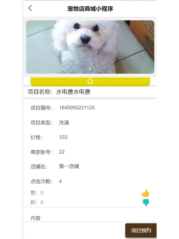寵物服務(wù)商城包括服務(wù)預(yù)約、寵物產(chǎn)品商店記錄等