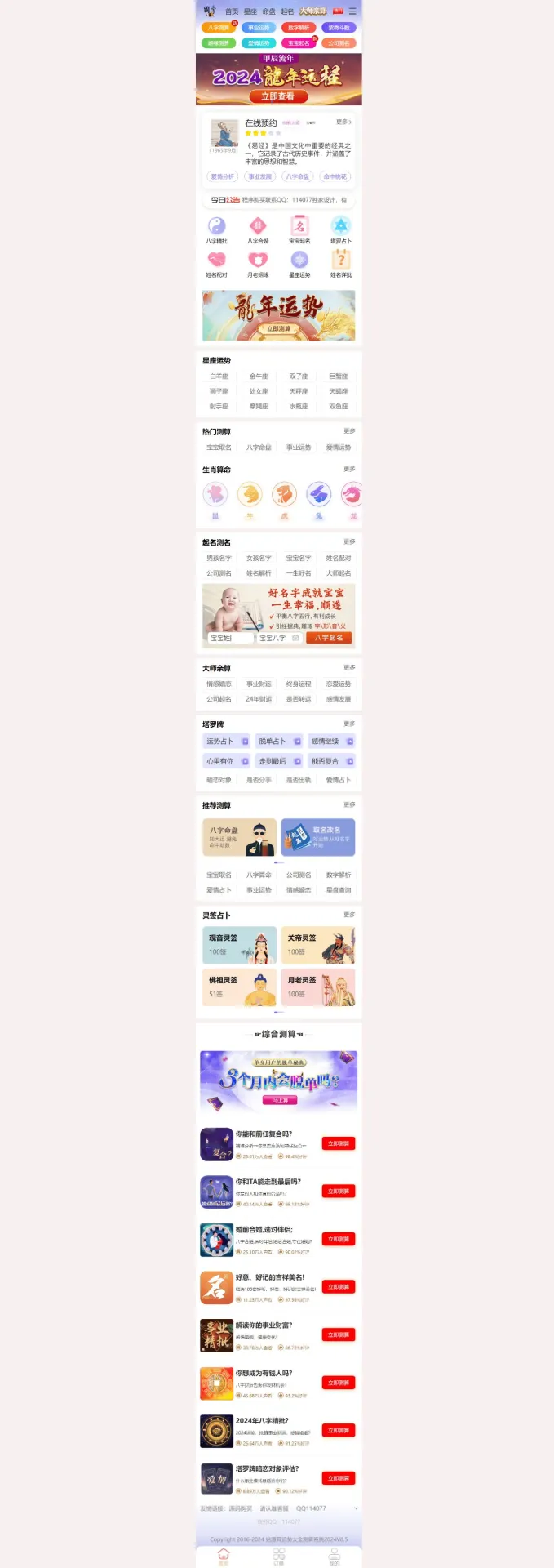 新版ui周易在線起名運勢測算網(wǎng)站系統(tǒng)H5源碼