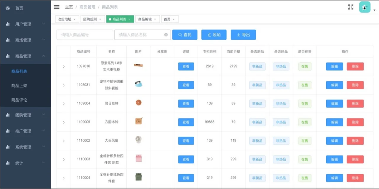 SpringBoot微信小程序商城源代碼(前端+后端) 小程序商城簡介源代碼: 該系統(tǒng)由三部分組成:Spring Boot后端API、web管理后端和微信小程序用戶前端。 技術棧:Java Spring Boot框架、Maven、MySQL、Vue.js、微信小程序 現有功能:購物車、團購、評論、會員、訂單、客服和各種營銷工具。