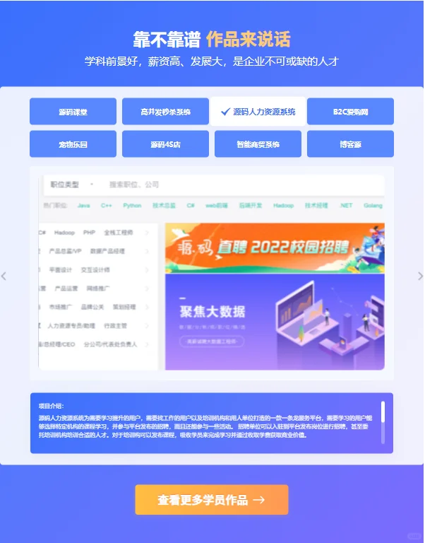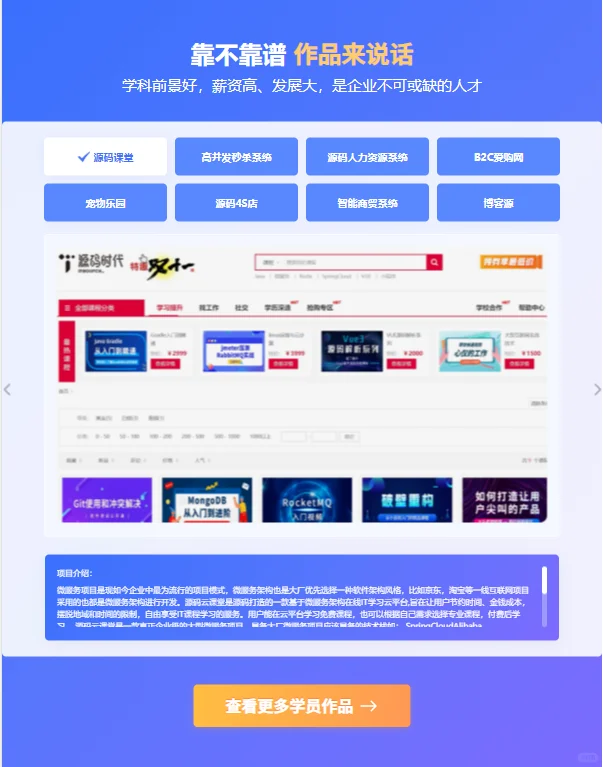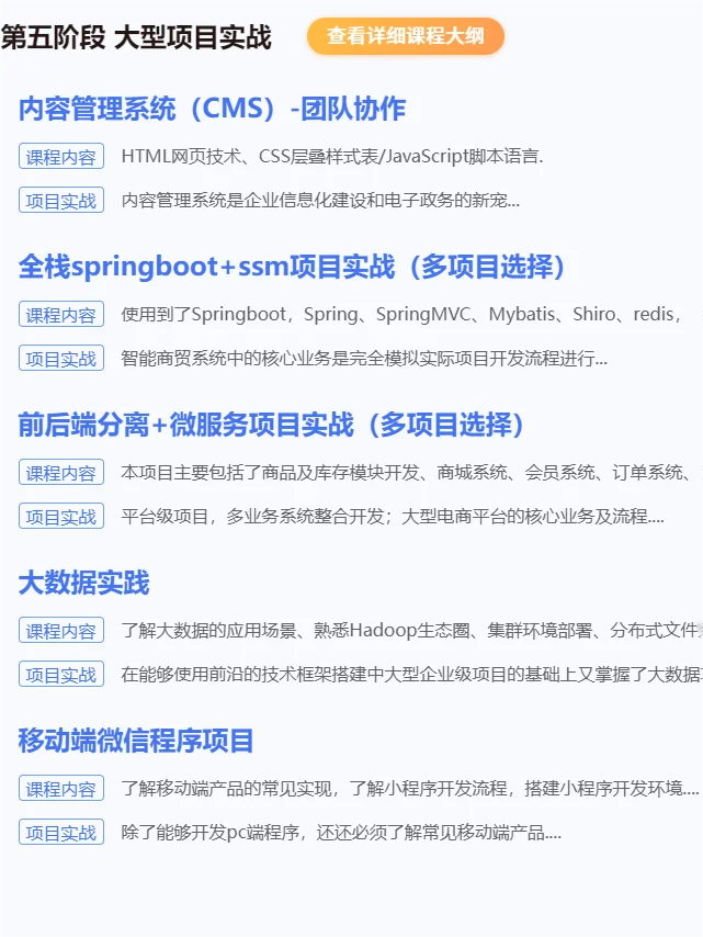 ? Java全棧學(xué)科在源代碼時代,不容錯過?。? ? 技術(shù)棧全覆蓋:課程內(nèi)容豐富多樣,涵蓋Vue3、SpringCloudAlibaba、RocketMQ、RabbitMQ、大數(shù)據(jù)、人工智能、Docker、云原生技術(shù)等關(guān)鍵技術(shù),讓您全面掌握構(gòu)建現(xiàn)代微服務(wù)應(yīng)用的關(guān)鍵技術(shù)! ? 實踐引出真知灼見:不僅是理論課程,還有大量的實踐項目!通過項目實踐,你可以將所學(xué)應(yīng)用到實際項目中,更好地理解理論知識! ? 云服務(wù)與人工智能的完美融合:課程包括COS云存儲、人臉識別、人工智能對話檢測等內(nèi)容,帶您探索微服務(wù)、云服務(wù)和人工智能技術(shù)的無限可能! 什么快來注冊源代碼時代的Java全棧學(xué)科,踏上你的技術(shù)成長之旅吧!在這個時刻,成為業(yè)內(nèi)備受追捧的人才是正確的!???