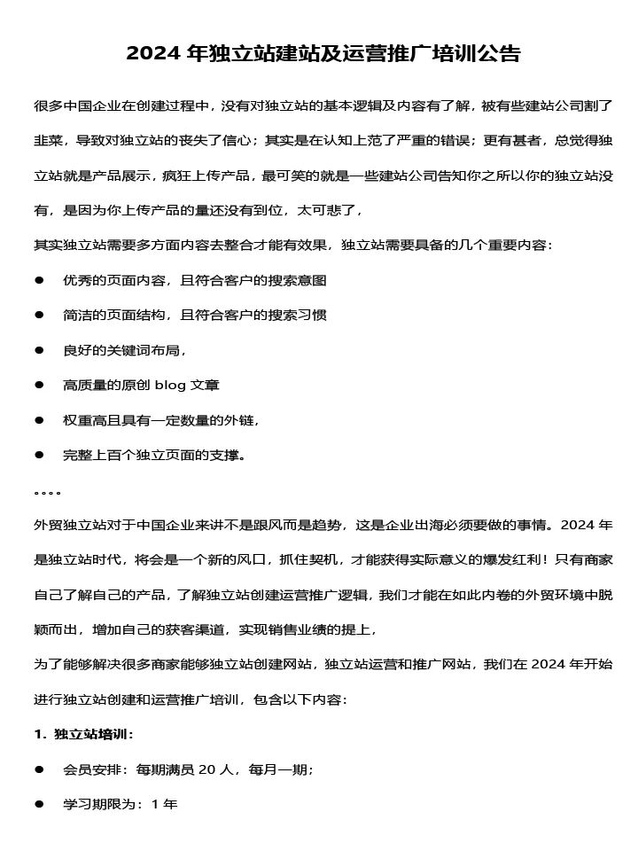 2024年獨(dú)立站建站及運(yùn)營(yíng)推廣培訓(xùn)公告