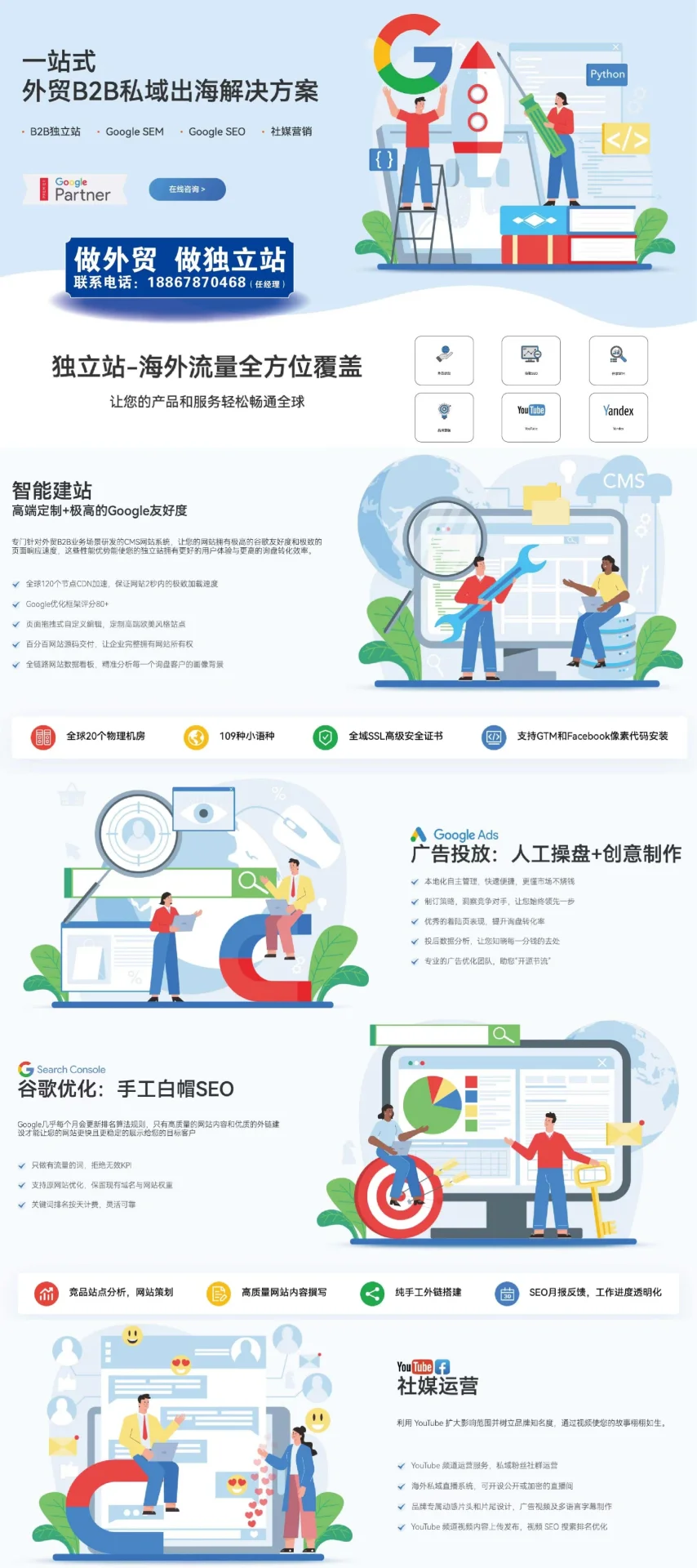 事實上,傳統(tǒng)上對獨立網(wǎng)站的定義是指零售端,但隨著外貿(mào)行業(yè)的內(nèi)部競爭、國際形勢的摩擦以及外貿(mào)企業(yè)獲客成本的增加,獨立網(wǎng)站并不是to C獨有的,to B也很合適。今天,我將簡單地談談同事們不愿意談論的To b獨立網(wǎng)站的推廣。今天,讓我們先來談談建立一個網(wǎng)站 關于網(wǎng)站建設,如果你自己了解這項技術(shù)或有很多時間,你可以建立自己的網(wǎng)站,添加一些必要的項目,如域名服務器、網(wǎng)站模板等,最多可以添加2k。然而,缺點非常明顯。當你為To B建立自己的網(wǎng)站時,你主要使用WP。不過,這個東西的后期運維成本并不低,熟悉度的門檻也很高。其次,當使用一個每月都建的網(wǎng)站時,與專業(yè)公司的對標差距仍然不小,而且你還需要在一個月內(nèi)為自己的勞動力支付大量費用。 所以關于建立一個網(wǎng)站的總結(jié)是:如果你理解但沒有多少錢,建立你自己的網(wǎng)站。把你理解但沒有太多時間的東西外包出去。如果是一家做獨立網(wǎng)站營銷和無腦外包的公司,除非你的公司能夠維持一個專業(yè)的網(wǎng)站推廣團隊 關于網(wǎng)站建設價格:市場上有三種類型的網(wǎng)站建設系統(tǒng):SAAS WP和自主開發(fā)的系統(tǒng)。SAAS果斷通過,比如領英和現(xiàn)在的阿里巴巴Okki,粗略報價為6-10k,未來每年續(xù)約6-10k。如果一個獨立的電臺不能獨立,我們就不要這樣做。 可以使用WP,正常外包價格為5-10k,而純定制價格為15-30k。好處是顯而易見的,它可以在源代碼中交付,域名服務器可以在第二年續(xù)訂。缺點如上所述。還有一個自主開發(fā)的系統(tǒng)。如果主要側(cè)重于垂直發(fā)展,例如B2B,則建議優(yōu)先考慮。如果它被宣傳為一個自研系統(tǒng),但實際上什么都能做,可能會感覺有點不同,所以要謹慎。這個的市場價格是5-8k。 決定價格的因素有很多,我只按照相同的標準計算,比如語言+頁面+圖像處理+域名+服務器+其他必要的插件等等