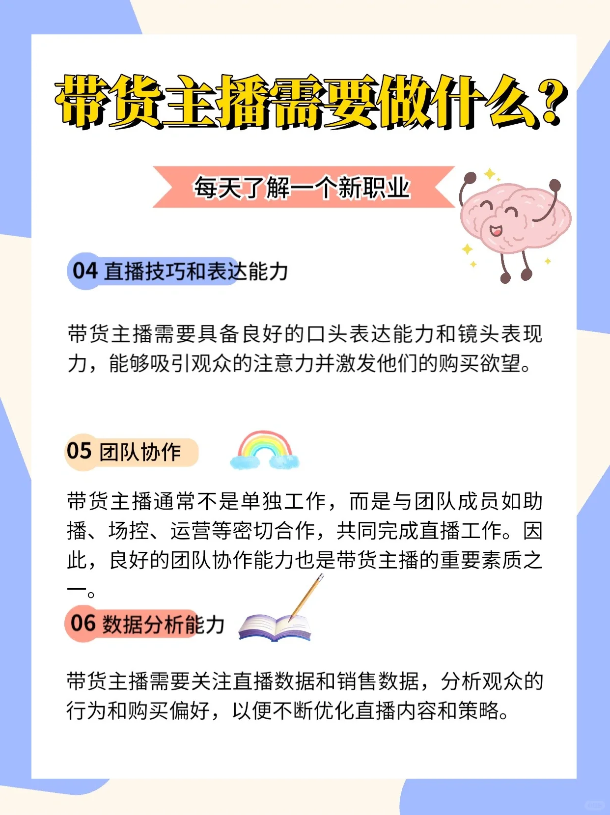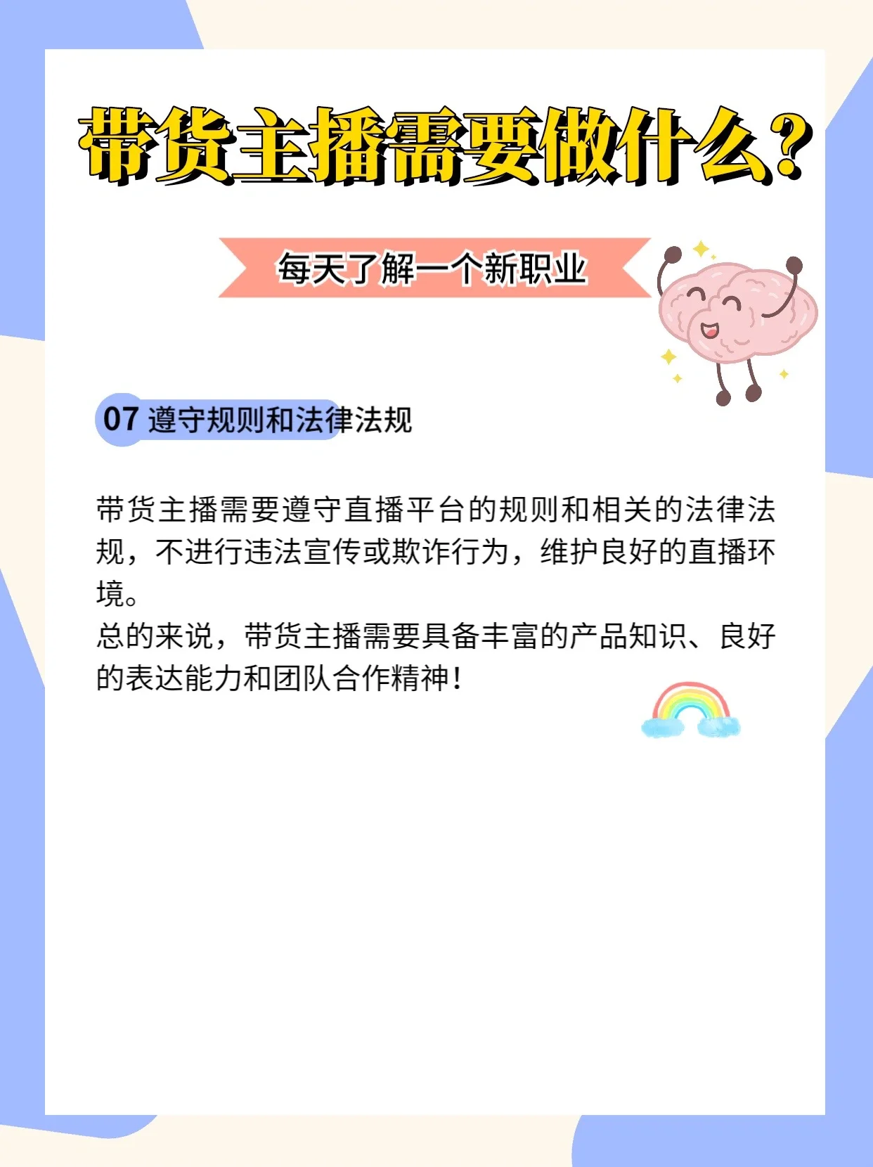 銷售主播是一種新興職業(yè),主要通過(guò)直播平臺(tái)推廣產(chǎn)品并促進(jìn)購(gòu)買行為。以下是直播主持人的一些主要職責(zé)和技能: 1.直播推廣:直播主持人需要介紹產(chǎn)品的特點(diǎn)、優(yōu)勢(shì)和使用方法,展示產(chǎn)品的有效性,與觀眾互動(dòng)交流,回答他們的問(wèn)題,并通過(guò)各種方式促進(jìn)購(gòu)買行為。 2.策劃直播內(nèi)容:銷售主播需要根據(jù)市場(chǎng)需求、受眾偏好、產(chǎn)品特點(diǎn)等因素,策劃和設(shè)計(jì)直播內(nèi)容,確保直播內(nèi)容具有吸引力、趣味性和導(dǎo)購(gòu)性。 3.產(chǎn)品知識(shí)儲(chǔ)備:銷售主播需要對(duì)推廣的產(chǎn)品有深入的了解和研究,掌握相關(guān)知識(shí)和技能,以便準(zhǔn)確地介紹產(chǎn)品并提供專業(yè)建議。 4.直播技巧和表達(dá)能力:銷售主播需要有良好的語(yǔ)言表達(dá)能力和鏡頭表現(xiàn),能夠吸引觀眾的注意力,激發(fā)他們的購(gòu)買欲。 5.團(tuán)隊(duì)協(xié)作:銷售主播通常不是單獨(dú)工作,而是與助理播、現(xiàn)場(chǎng)控制、運(yùn)營(yíng)等團(tuán)隊(duì)成員密切合作,共同完成直播工作。因此,良好的團(tuán)隊(duì)合作能力也是直播主持人的重要素質(zhì)。 6.數(shù)據(jù)分析能力:銷售主播需要關(guān)注直播數(shù)據(jù)和銷售數(shù)據(jù),分析觀眾行為和購(gòu)買偏好,以持續(xù)優(yōu)化直播內(nèi)容和策略。 7.遵守規(guī)則和法律法規(guī):直播主持人需要遵守直播平臺(tái)的規(guī)則和相關(guān)法律法規(guī),避免非法推廣或欺詐行為,并保持良好的直播環(huán)境。煙花R氣球R 總體而言,直播主持人需要具備豐富的產(chǎn)品知識(shí)、良好的溝通技巧和團(tuán)隊(duì)精神!