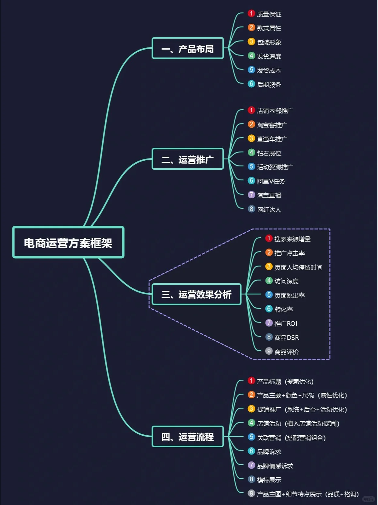 1、 產(chǎn)品布局 1.質(zhì)量保證 2.樣式屬性 3.包裝形象 4.運(yùn)輸速度 5.運(yùn)費(fèi) 6.后期服務(wù) 2、 運(yùn)營推廣 1.店內(nèi)促銷 2.淘寶客戶推廣 3.直通車推廣 4.鉆石展位 5.活動資源推廣 6、阿里V的任務(wù) 7.淘寶直播 8.網(wǎng)紅影響者 3、 運(yùn)營有效性分析 1.搜索源增量 2.推廣點(diǎn)擊率 3.人均停留頁面時間 4.進(jìn)入深度 5.頁面跳出率 6.轉(zhuǎn)化率 7.提高投資回報率 8.產(chǎn)品DSR 9.產(chǎn)品評價 4、 操作流程 1.產(chǎn)品標(biāo)題(搜索優(yōu)化) 2.產(chǎn)品主題+顏色+尺寸(屬性優(yōu)化) 3.推廣推廣(系統(tǒng)+后臺+活動優(yōu)化) 4.店鋪活動(植入店鋪活動促銷|) 5.關(guān)聯(lián)營銷(結(jié)合營銷組合) 6.品牌需求 7.品牌情感訴求 8.型號顯示 9、產(chǎn)品主圖+細(xì)節(jié)特征展示(質(zhì)量+風(fēng)格)
