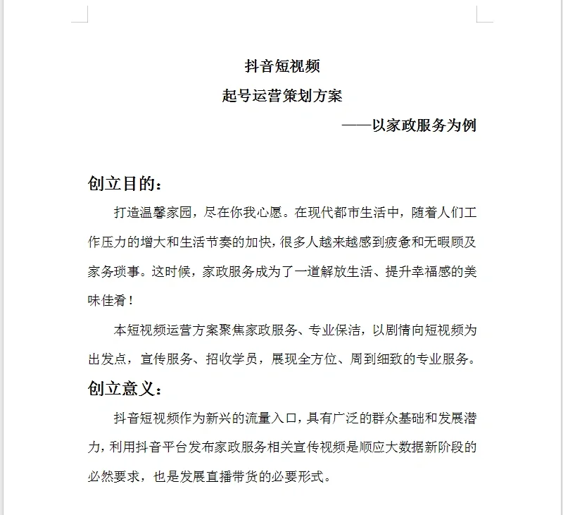 抖音短視頻作為一個新興的流量入口,有著廣泛的群眾基礎(chǔ)和發(fā)展?jié)摿Α@枚兑羝脚_發(fā)布家政相關(guān)宣傳視頻,是順應(yīng)大數(shù)據(jù)新階段的必然要求,也是發(fā)展直播帶貨的必要形式。 營造一個溫馨的家,實現(xiàn)我們的心愿。在現(xiàn)代城市生活中,隨著工作壓力的增加和生活節(jié)奏的加快,許多人感到越來越累,沒有時間打理家務(wù)。在這一點上,家政服務(wù)已經(jīng)成為一道解放生活、增進(jìn)幸福的美味佳肴! 本次短視頻運營計劃以家政服務(wù)和專業(yè)保潔為主,以劇情導(dǎo)向的短視頻為切入點,推廣服務(wù)、招生,展示全面、周到、細(xì)致的專業(yè)服務(wù)。