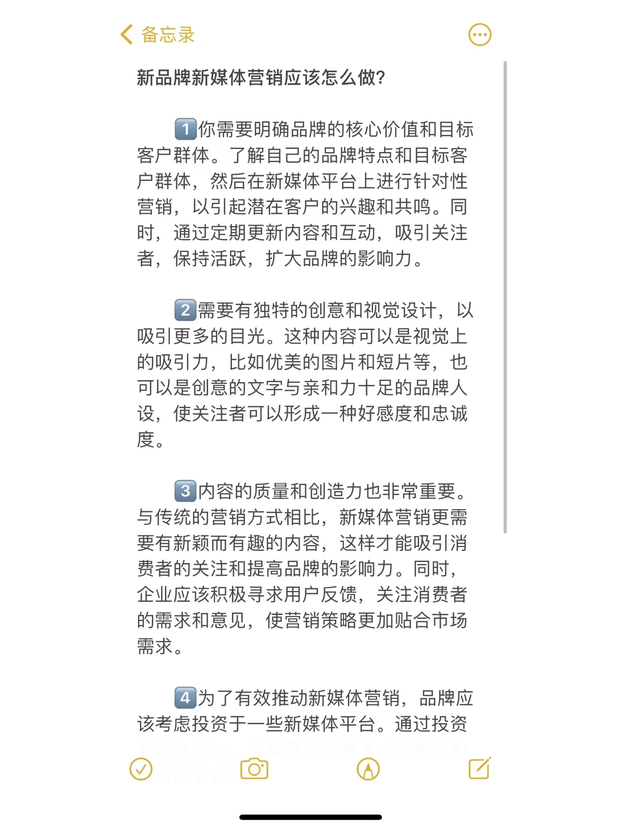 新品牌、新媒體營銷應(yīng)該如何做 首先,我們需要明確產(chǎn)品的核心競爭力,其次,我們需要確定產(chǎn)品的目標(biāo)受眾,這是我們在眾多類別中脫穎而出的基礎(chǔ)。 其次,內(nèi)容的創(chuàng)意和視覺設(shè)計在推廣過程中也很重要,這是吸引客戶注意力的第一步。當(dāng)然,內(nèi)容的質(zhì)量不容忽視,好的內(nèi)容是吸引流量的關(guān)鍵。 最后,數(shù)據(jù)審查使我們能夠分析推廣情況,在哪些方面需要改進(jìn)和補(bǔ)充一目了然。