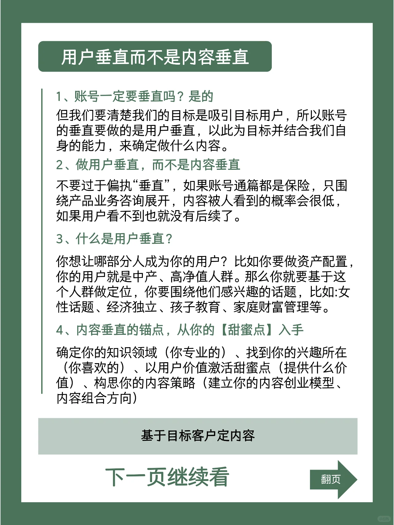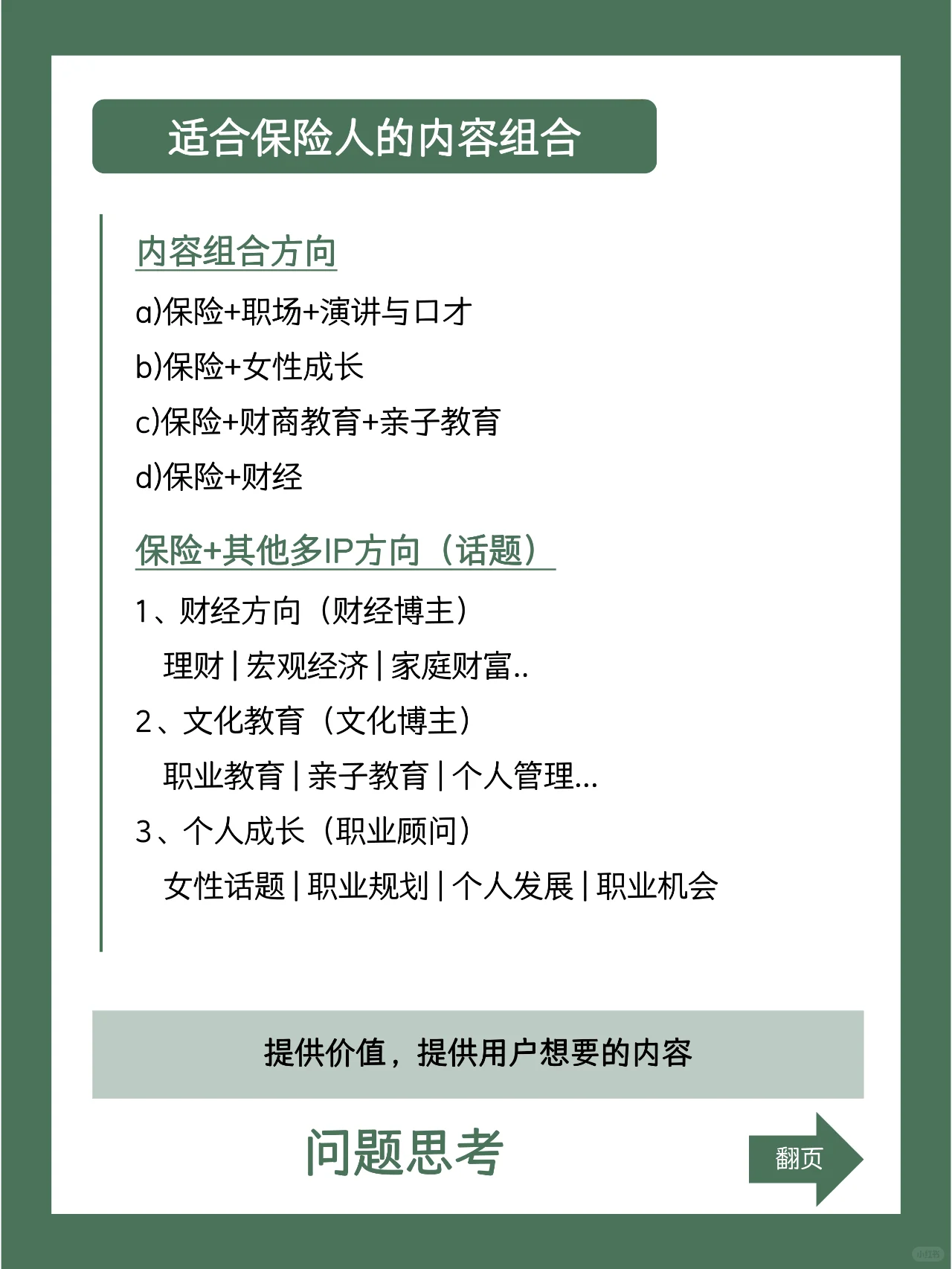 2024年,保險公司必須通過自媒體擴大客戶群,這仍然是擴大客戶群的最低成本方式。 要記住一個成功的賬戶,需要遵循一套方法。 今天,我們先來談?wù)勝~號定位和賬號內(nèi)容 賬戶定位 ? 賬戶需要垂直嗎對 但我們需要明確的是,我們的目標(biāo)是吸引目標(biāo)用戶,所以賬戶的垂直方面應(yīng)該以用戶為導(dǎo)向,以此為目標(biāo),并結(jié)合我們自己的能力,來決定做什么內(nèi)容。 ? 垂直面向用戶,而非內(nèi)容 不要過于偏執(zhí)于“垂直”。如果賬戶都是關(guān)于保險的,只關(guān)注產(chǎn)品和業(yè)務(wù)咨詢,那么內(nèi)容被他人看到的概率就會很低。如果用戶看不到它,將不會有后續(xù)行動。 ? 什么是用戶垂直 你想讓哪一組人成為你的用戶例如,如果你想進行資產(chǎn)配置,你的用戶是中產(chǎn)階級和高凈值個人。所以你需要基于這群人來定位自己,關(guān)注他們感興趣的話題,比如女性話題、經(jīng)濟獨立、兒童教育、家庭財富管理等。 ? 內(nèi)容的垂直錨點,從您的最佳位置開始 確定你的知識領(lǐng)域(你的專業(yè)),找到你的興趣(你喜歡什么),激活具有用戶價值的亮點(提供什么價值),概念化你的內(nèi)容戰(zhàn)略(建立你的內(nèi)容創(chuàng)業(yè)模式,內(nèi)容投資組合方向) 帳戶內(nèi)容 ? 保險+職場+演講口才 ? 保險+女性成長 ? 保險+金融教育+親子教育 ? 保險+金融