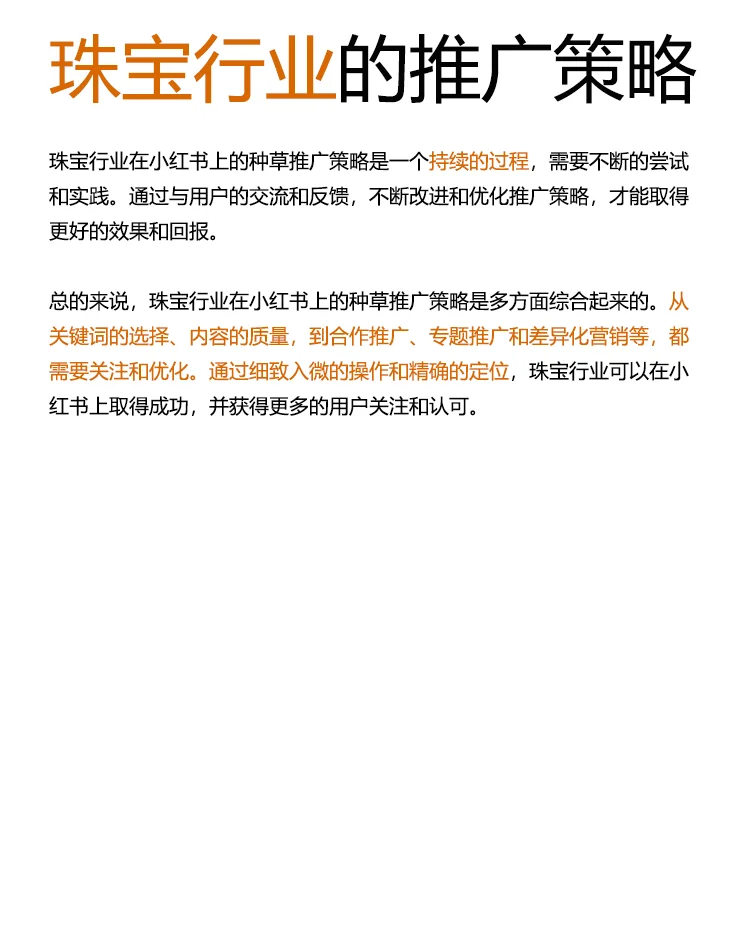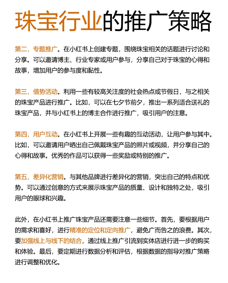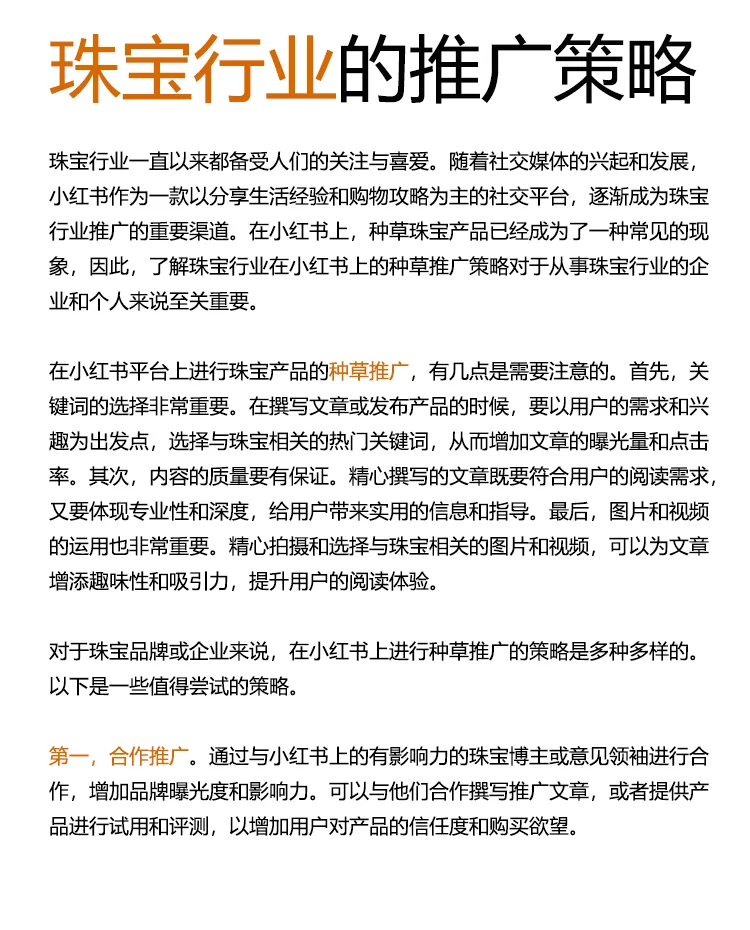 作為一個(gè)主要專注于分享生活經(jīng)驗(yàn)和購物策略的社交平臺(tái),小紅書逐漸成為推動(dòng)珠寶行業(yè)發(fā)展的重要渠道。在小紅書上,種植飾品已經(jīng)成為一種普遍現(xiàn)象。 以下是一些值得在珠寶行業(yè)推廣的策略: ? 協(xié)同推廣 ? 特別促銷 ? 借款機(jī)會(huì)活動(dòng) ? 用戶交互 ? 差異化營銷 ? 加強(qiáng)線上線下融合 總體而言,珠寶行業(yè)在小紅書上的推廣策略是多方面的結(jié)合。通過精細(xì)的運(yùn)營和精準(zhǔn)的定位,珠寶行業(yè)可以在小紅書上獲得成功,獲得更多的用戶關(guān)注和認(rèn)可。