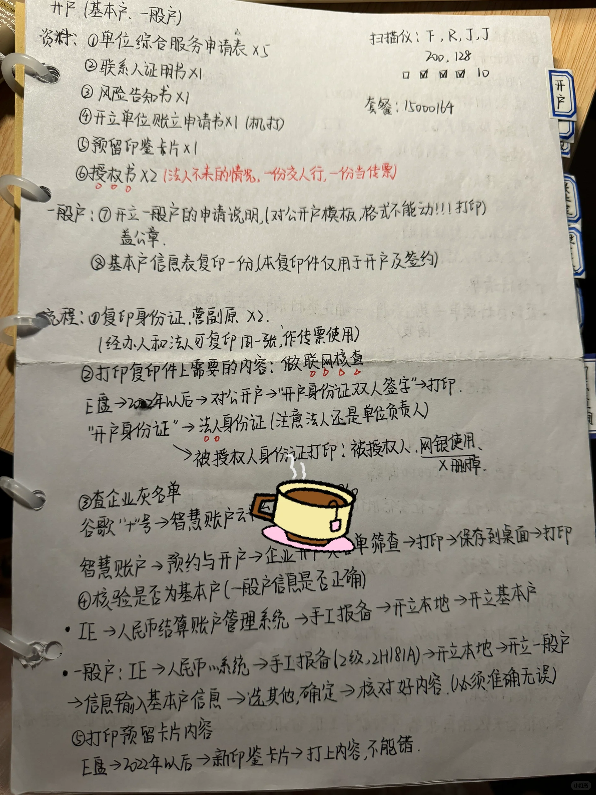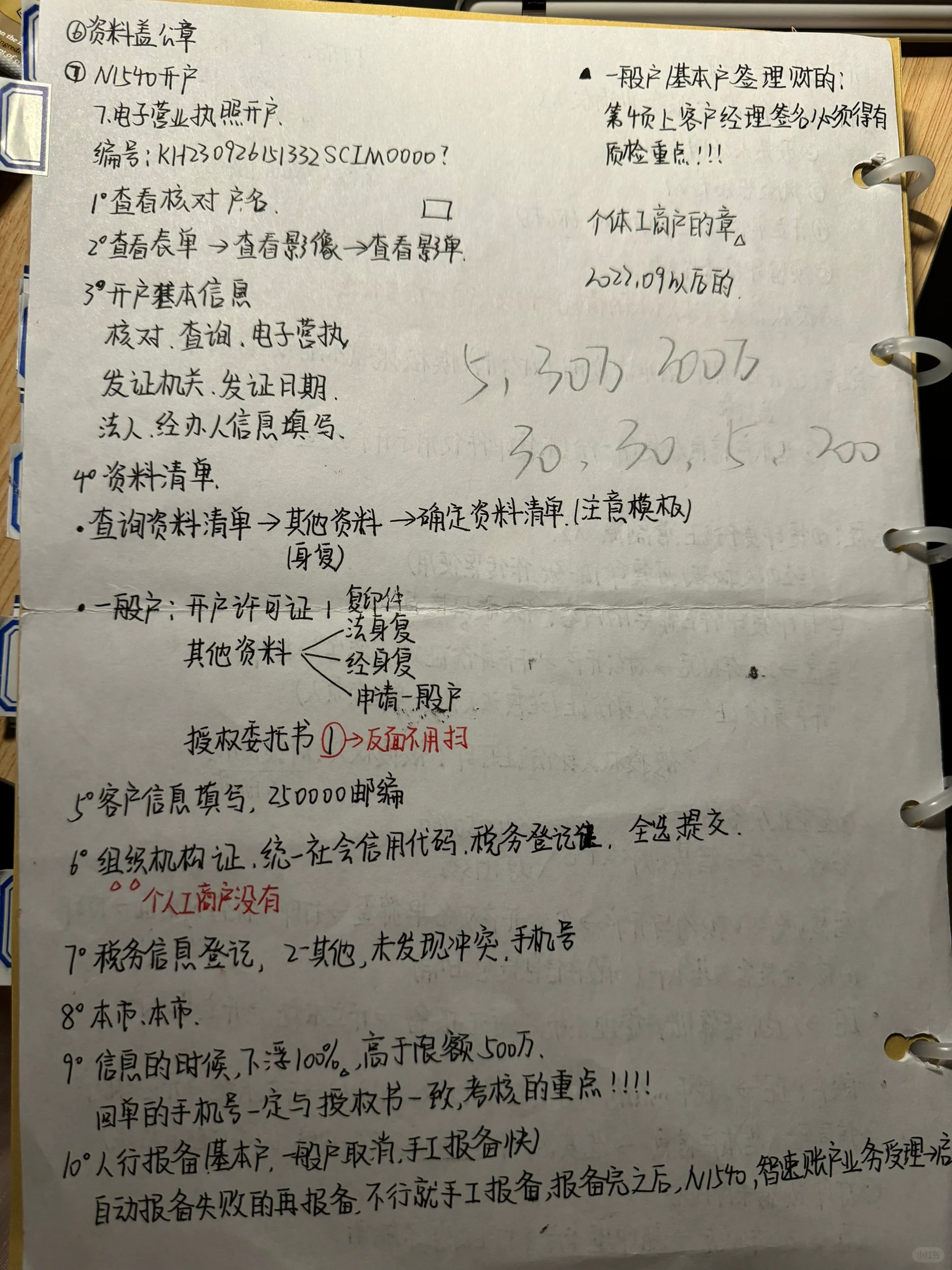 ? 信息:1。客戶準備 1、營業(yè)執(zhí)照原件2。三章3。法人身份證原件 4.經(jīng)辦人身份證原件(法定代表人不能來的) 2、 銀行準備 1.本單位綜合服務(wù)申請表(一式5份)2。聯(lián)系人證明 3.風險通知4。申請開立單位賬戶 5.預(yù)留密封卡6。授權(quán)書(一式兩份,法定代表人不來) ? 開戶前準備: 1、 復印身份證和營業(yè)執(zhí)照一式兩份,一份作為傳票,另一份作為賬戶信息,并提交給中國人民銀行。打印“此復印件僅供開戶和簽字使用”,蓋章并簽字。 2、 查看企業(yè)灰色名單 3、 開戶預(yù)檢查,核實是否可以開立基本賬戶,是否存在長期停牌賬戶。 4、 60027在線驗證可以打印在身份證副本的背面,用作傳票。 ? 公眾號開通:N1540 1.選擇要開戶的電子營業(yè)執(zhí)照,輸入預(yù)處理編號,然后進入界面。 2.核實戶口→ 查看驗證報告→ 查看圖像→ 查看圖像→ 驗證是否為新公司→ 驗證電子營業(yè)執(zhí)照信息是否正確→ 填寫營業(yè)執(zhí)照的頒發(fā)機關(guān)和日期→ 讀取經(jīng)辦人的ID 3.查詢信息列表:選擇其他信息(放置在其他信息中的身份證復印件)→ 確認信息列表→ 提交 4.客戶信息填報->選擇證明材料(統(tǒng)一社會信用代碼、稅務(wù)登記證、組織機構(gòu)證書)->稅務(wù)信息登記 5.提交打印版綜合服務(wù)申請表? 開戶申請表 6.注冊企業(yè)網(wǎng)銀用戶、簽約產(chǎn)品、賬戶用戶、收款人身份、支付密碼設(shè)備等信息。 7.數(shù)據(jù)恢復:綜合服務(wù)申請表(5張,按順序排列,記得戳好缺口);申請表的第二份副本;開戶收據(jù)(包括在其他文件中) ? 開戶結(jié)束:1。向中國人民銀行備案? 啟用帳戶 2.記錄谷歌系統(tǒng) 3.證書注冊,61425注冊,61426收藏 4.通過動態(tài)賬戶激活激活網(wǎng)上銀行