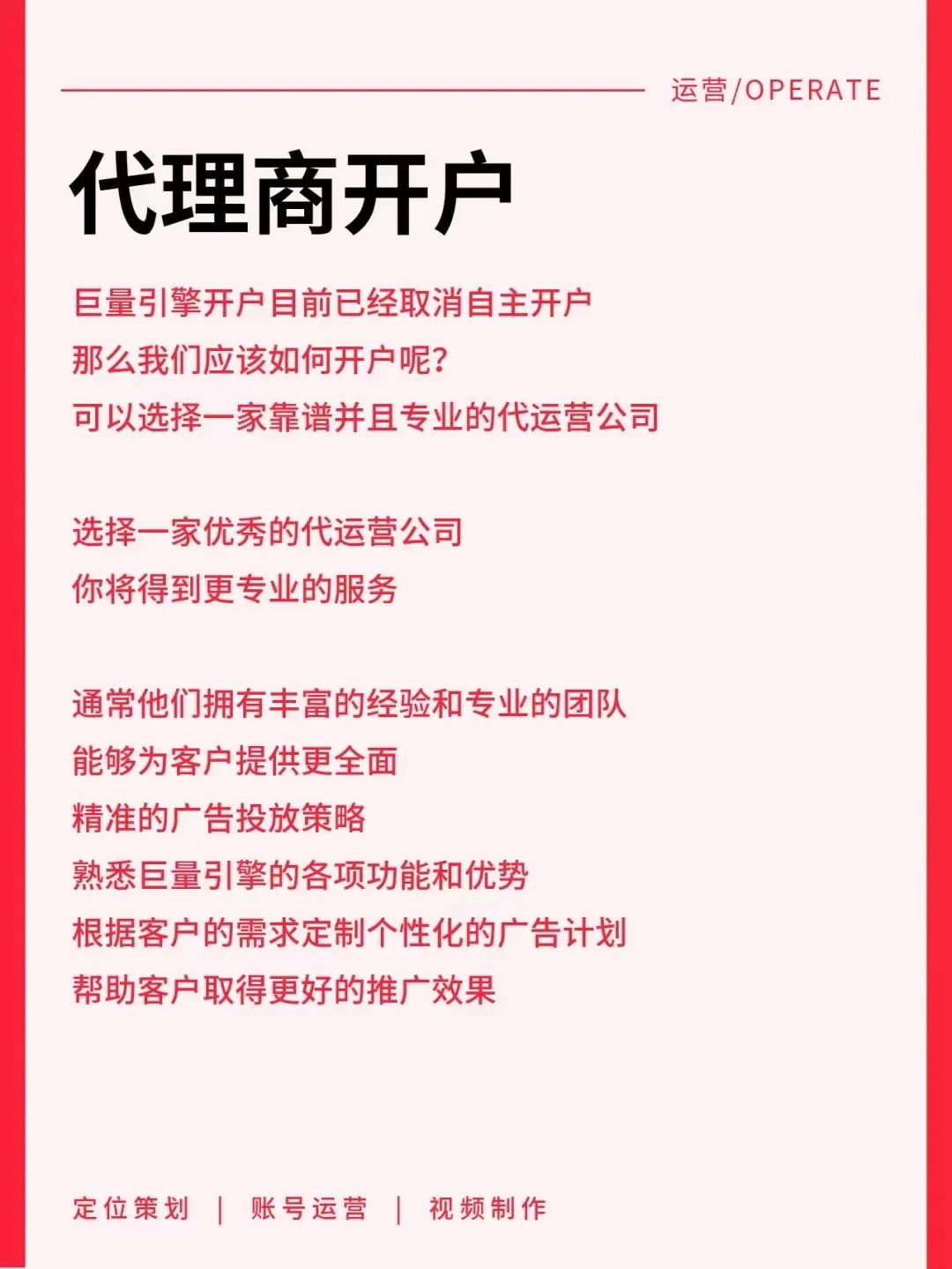 親愛的朋友們,今天我想和大家聊一聊為海量引擎開戶的事!你注意到自己為大型引擎開戶和為代理商開戶的區(qū)別了嗎在2022年3月之前,我們?nèi)匀豢梢蚤_立自己的賬戶,但現(xiàn)在這個端口已經(jīng)關(guān)閉,甚至我們之前的自營賬戶也被撤銷了。那么,開設(shè)代理賬戶有什么好處呢接下來,我將為您解開這個謎團,帶您了解自己為大型引擎開戶和為代理商開戶的區(qū)別!自己開戶和代理開戶的區(qū)別在于,過去我們也可以登錄自己的信息和賬戶申請開戶協(xié)議,獨立開戶。然而,從2022年3月開始,巨人引擎關(guān)閉了這個自開端口,并收回了之前的自開賬戶。這導致許多人考慮開設(shè)代理賬戶。那么,開設(shè)代理賬戶有什么好處呢 第二段中大量身份證代理人的優(yōu)勢 一個龐大的身份代理可以開設(shè)一個主賬戶,并擁有無數(shù)的子賬戶。這種開戶方式可以更方便地管理不同的賬戶,靈活調(diào)整促銷策略,提高促銷效率。對于那些需要同時推廣多個項目或客戶的人,代理開戶提供了一個更方便、更高效的解決方案。李輝 第3款:代理開戶的專業(yè)服務(wù) 選擇一個龐大的ID代理來開戶,將為您提供更專業(yè)的服務(wù)。代理商通常擁有豐富的經(jīng)驗和專業(yè)的團隊,能夠為客戶提供更全面、準確的廣告策略。他們熟悉海量引擎的各種功能和優(yōu)勢,可以根據(jù)客戶需求定制個性化的廣告計劃,所有這些都有助于客戶獲得更好的推廣效果。嘿基于以上對比,你應(yīng)該對自己和代理商為海量引擎開戶有了更清晰的認識吧代理開戶提供更便捷、更靈活、更專業(yè)的服務(wù),讓您更擅長廣告投放!如果你還有什么問題或需要幫助,歡迎給老周留言,讓我們一起探索廣告植入的奧秘!