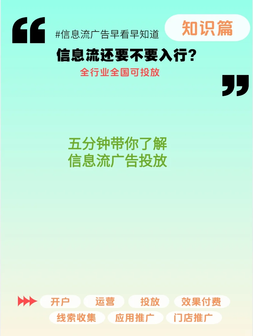 信息流廣告的投放過程需要以下步驟: 確定廣告目標 明確產品定位,進行有針對性的廣告制作和投放 開戶 選擇開戶渠道 官方渠道開戶:僅開戶,不負責后期運營 代理渠道開戶:負責開戶同時提供代理運營服務 準備開戶文件 營業(yè)執(zhí)照、企業(yè)身份信息、行業(yè)資質,如食品經營許可證、商標證書等;個人用戶當前不支持開戶 資格審查 上傳開戶資格并進行賬戶審核 充電 官方要求預付10000英鎊或更多,代理商通常最低收費5000英鎊 施工計劃 上傳宣傳視頻并建立登陸頁面以供審查。在審查登錄頁后,將再次審查該計劃。一旦獲得批準,就可以發(fā)布廣告 效果分析 了解廣告投放中的問題,是否達到預期效果,并及時進行優(yōu)化 你不懂的寶藏,趕緊收藏起來 #梅林廣告