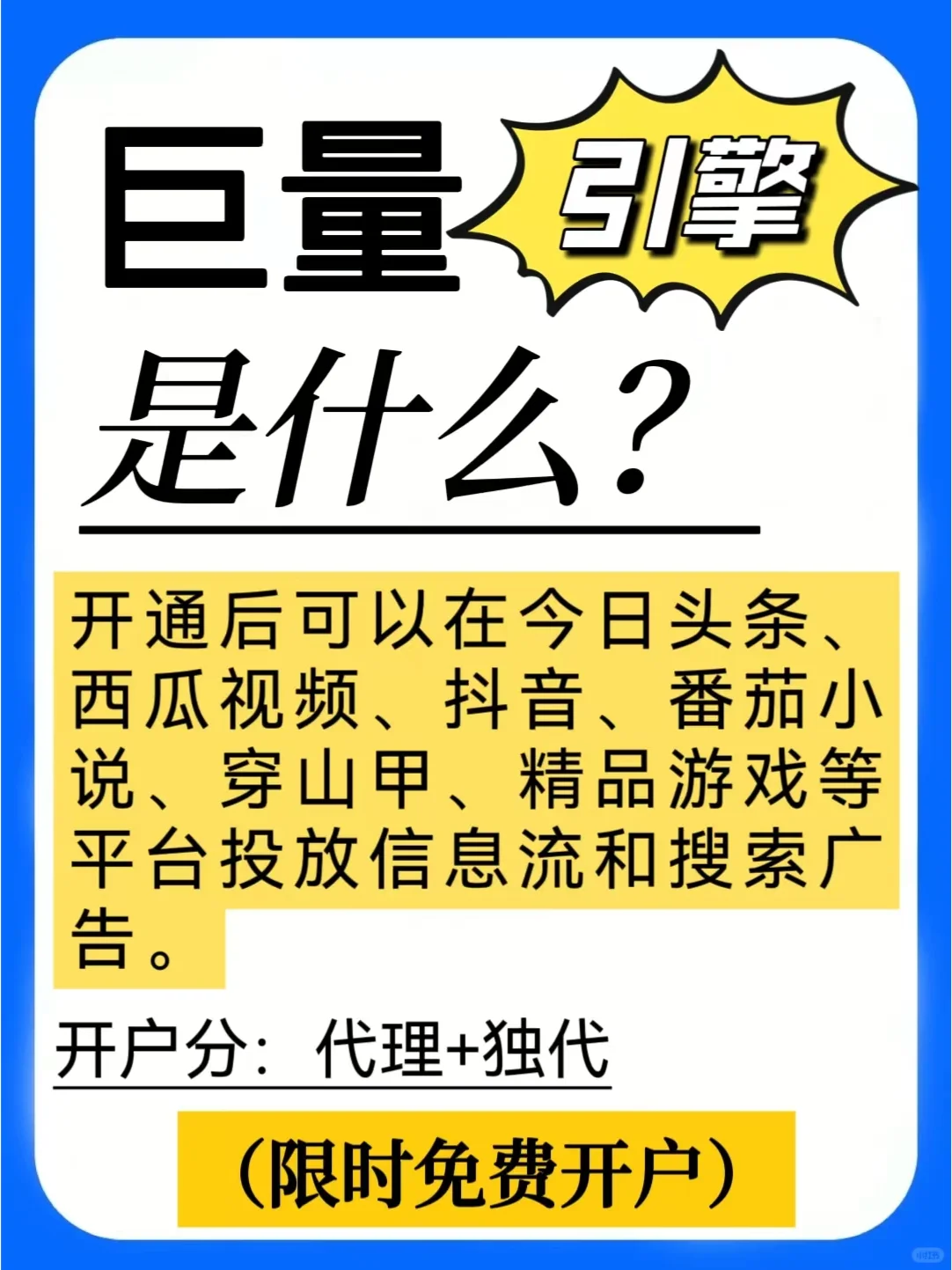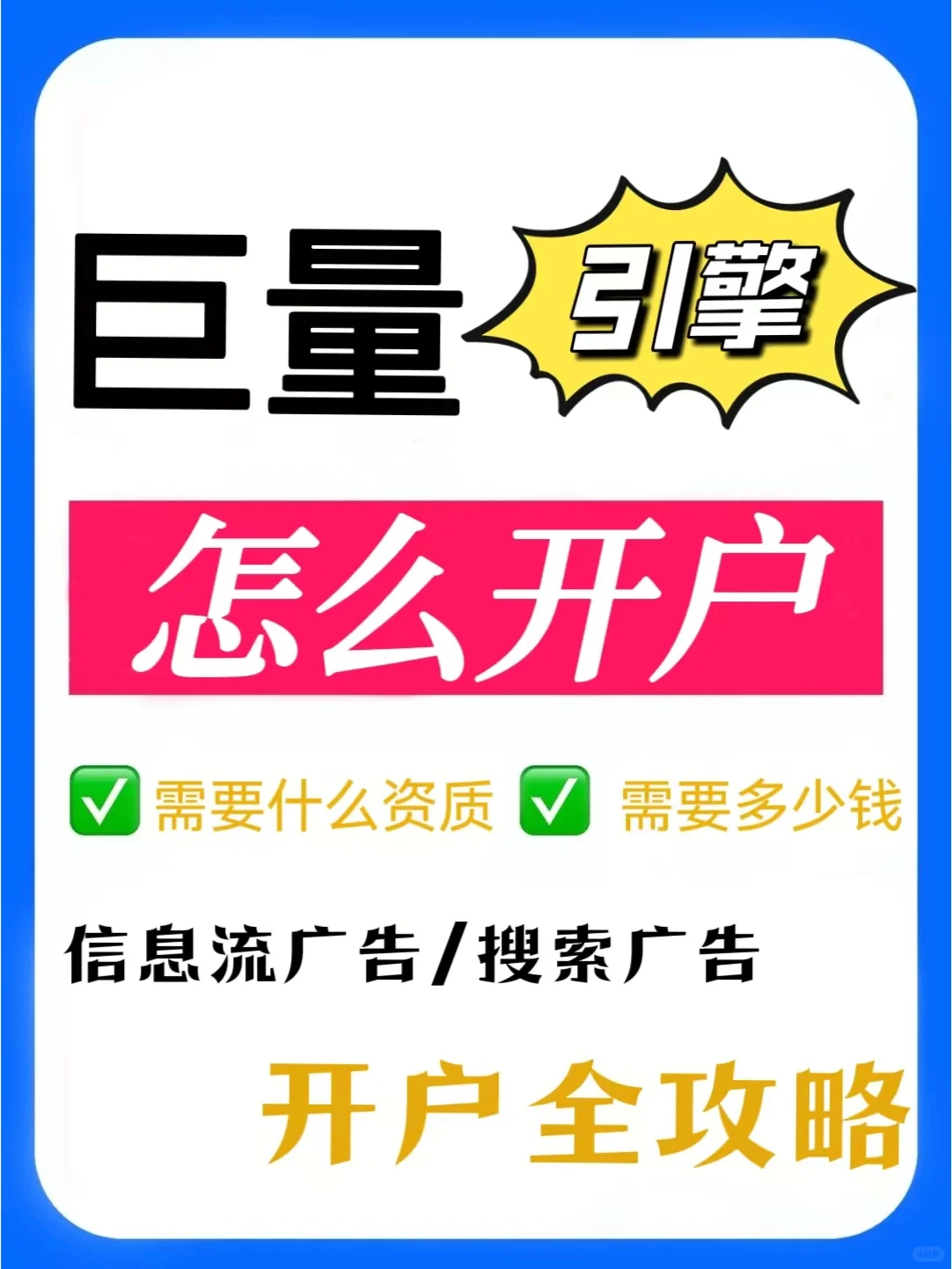 如何為大量廣告開立賬戶 1、巨人引擎的開戶方式分為代理和獨家代理兩種。您可以通過提供代理商的信息來開立賬戶,最低充值額為5000元。 2、開通海量引擎廣告賬號后可以進行廣告投放的平臺包括: 抖音、今日頭條、西瓜、番茄小說、精品游戲、穿山甲等 3.啟動一臺大型發(fā)動機需要什么材料 營業(yè)執(zhí)照+企業(yè)賬戶+企業(yè)身份信息+企業(yè)電話 我不懂或者不開賬戶