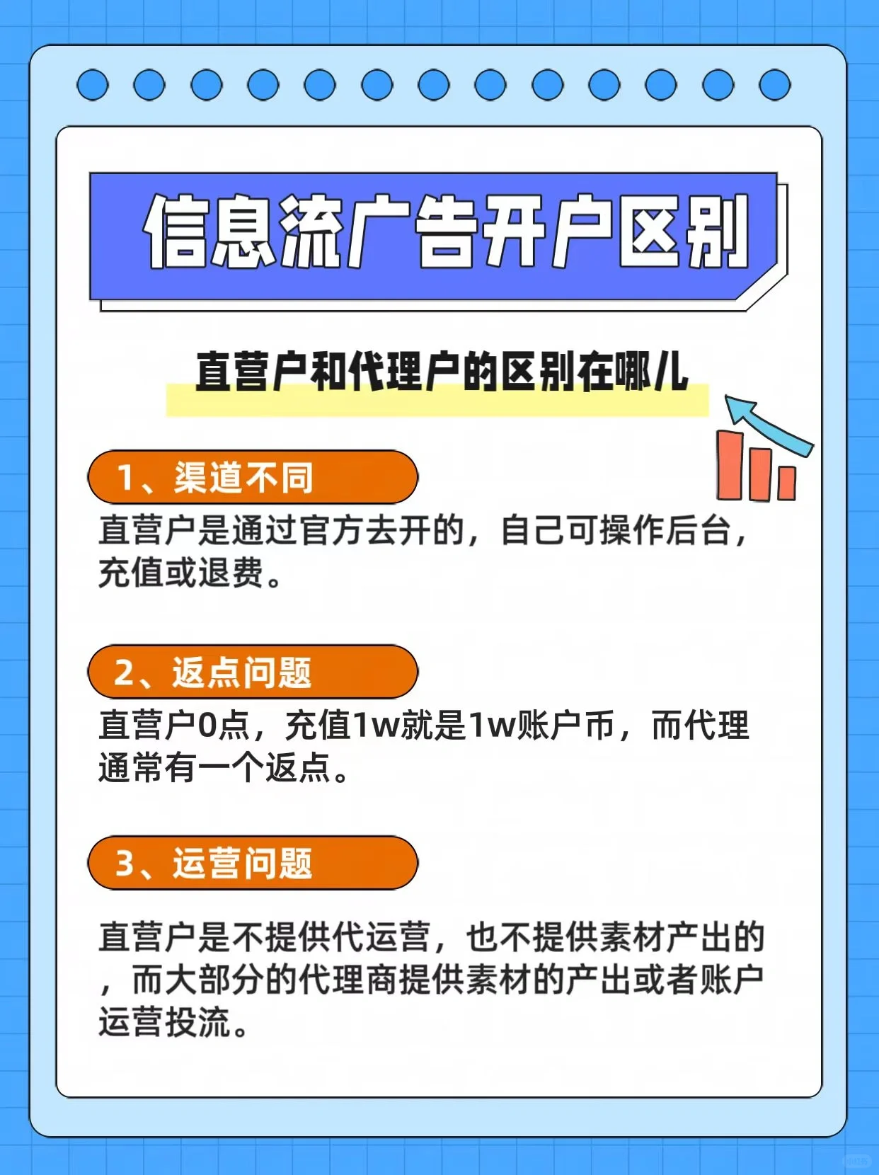 通常有兩種類型:第一種是通過(guò)官方直營(yíng)賬戶,第二種是通過(guò)代理賬戶。 讓我們先來(lái)談?wù)勏嗨浦帲?賬戶所有功能正常,包括充值和廣告,沒(méi)有任何區(qū)別。 區(qū)別在于: 一? . 直營(yíng)賬戶通過(guò)官方渠道開立,可操作后臺(tái)充值或退款。 二? . 直接賬戶0分,充值1萬(wàn)相當(dāng)于1萬(wàn)個(gè)賬戶幣,而代理商通常會(huì)有返利。 三? . 直營(yíng)賬戶不提供代理業(yè)務(wù)或物料生產(chǎn),而大多數(shù)代理提供物料生產(chǎn)或賬戶運(yùn)營(yíng)投資。 具體選擇可以根據(jù)自己產(chǎn)品的實(shí)際情況,也可以咨詢我們。我是小七,專注于推廣!