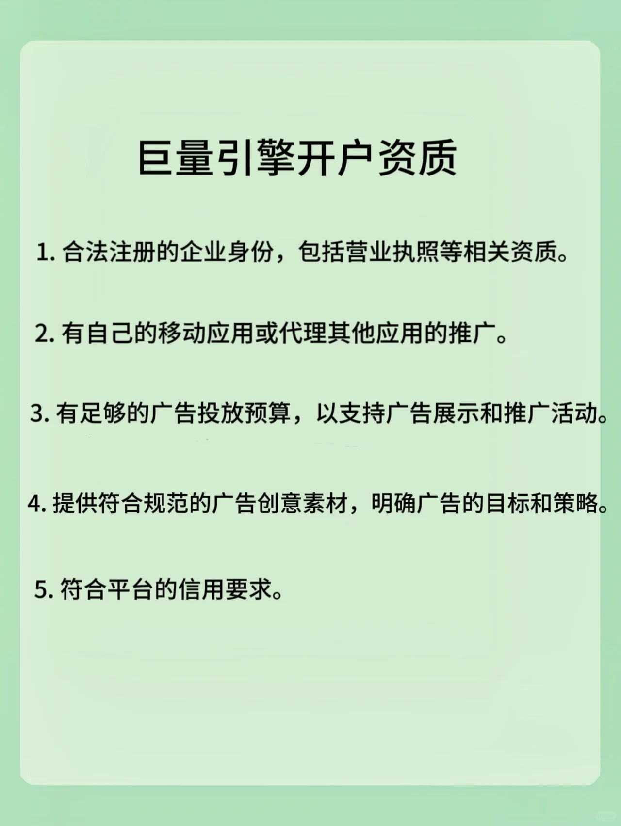 開(kāi)設(shè)大型發(fā)動(dòng)機(jī)賬戶的要求如下: 1.合法注冊(cè)的企業(yè)身份,包括營(yíng)業(yè)執(zhí)照等相關(guān)資質(zhì)。 2.推廣自己的移動(dòng)應(yīng)用程序或代理其他應(yīng)用程序。 3.有足夠的廣告預(yù)算來(lái)支持廣告展示和促銷活動(dòng)。 4.提供標(biāo)準(zhǔn)化的廣告創(chuàng)意素材,明確廣告的目標(biāo)和策略。 5.滿足平臺(tái)的信用要求。 對(duì)于不同的主體行業(yè),如普通企業(yè)、民辦非企業(yè)、政府機(jī)關(guān)、企事業(yè)單位、法律服務(wù)、社會(huì)組織、學(xué)校等,必須提供發(fā)證機(jī)關(guān)頒發(fā)的相應(yīng)主體資格;對(duì)于房地產(chǎn)、食品等特殊行業(yè),必須按照行業(yè)資質(zhì)要求提交相關(guān)資質(zhì),如《房地產(chǎn)預(yù)售許可證》、《食品經(jīng)營(yíng)許可證》等。如果廣告材料涉及商標(biāo)、專利等,廣告主需要額外提供《商標(biāo)注冊(cè)證書(shū)》或《商標(biāo)注冊(cè)申請(qǐng)受理通知書(shū)》、《專利證書(shū)》等;如果廣告材料涉及著作權(quán)、軟件著作權(quán)等,則需要提供《軟件著作權(quán)登記證》、《著作權(quán)登記證書(shū)》等附加文件。證明文件應(yīng)當(dāng)真實(shí)、合法,能夠證明廣告主有投放相關(guān)廣告的必要權(quán)利。