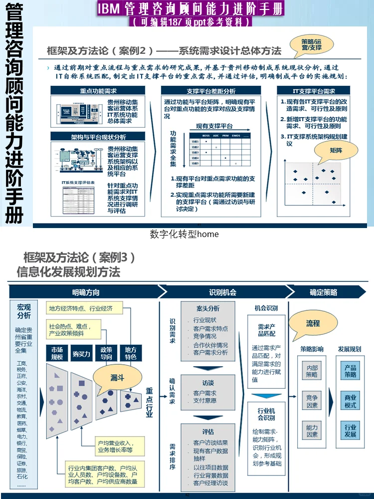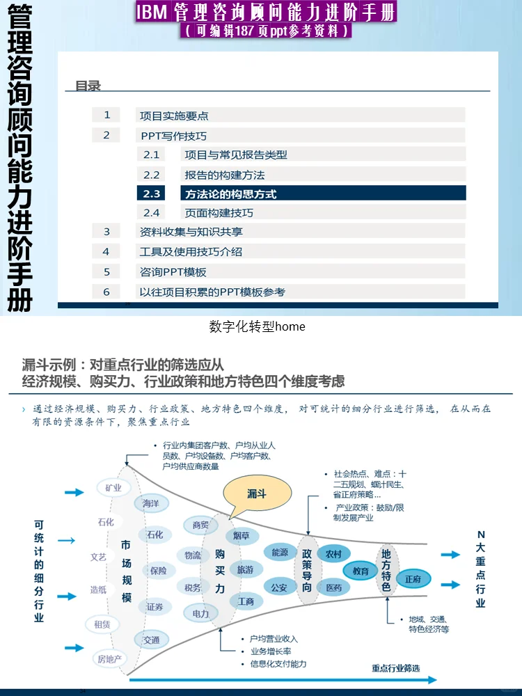 在管理咨詢行業(yè),如何提高我們的能力,為客戶提供更好的服務(wù),一直是我們思考的問題。 最近,我發(fā)現(xiàn)了一本非常實用的手冊,它幫助我更好地了解如何編寫咨詢服務(wù)報告和創(chuàng)建PPT。 本手冊通俗易懂,內(nèi)容豐富,使我能夠快速掌握撰寫咨詢服務(wù)報告的技巧和PPT制作的要領(lǐng)。 更重要的是,它使我對工作更加熟練,并得到了客戶的一致好評。 如果你也是管理咨詢行業(yè)的一員,那么這本手冊可能就是你所需要的。