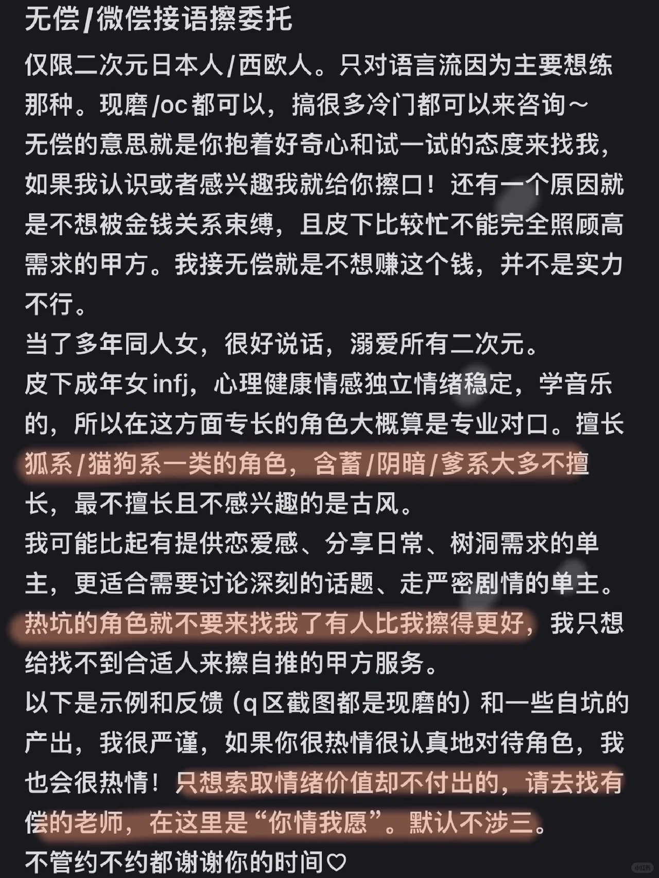無償接冷門/跑團(tuán)貓 語擦委托1v1