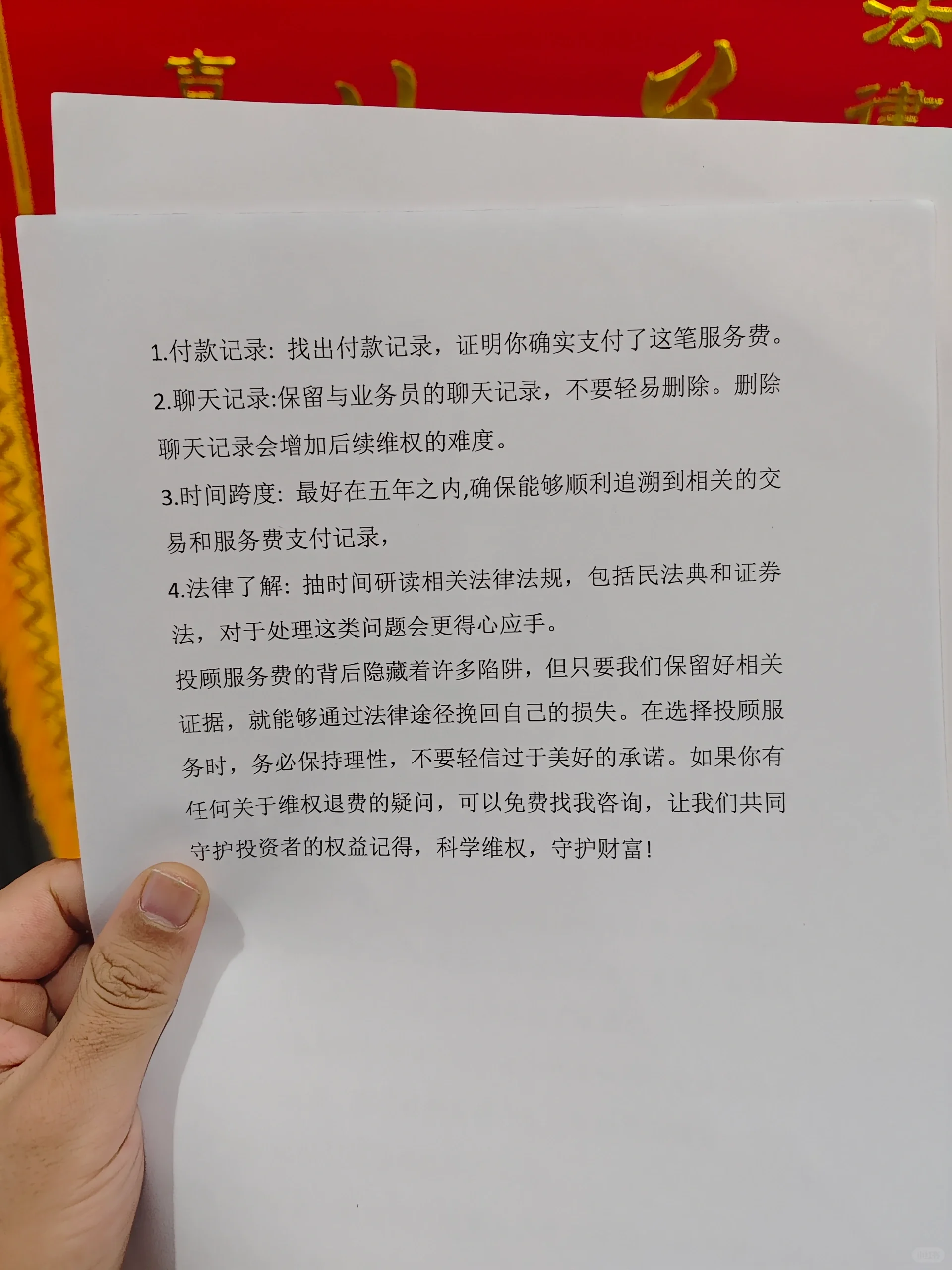 股票咨詢騙局通常涉及非法投資咨詢公司或個人,通過虛假廣告、夸大回報和其他方式誘導(dǎo)投資者支付高昂的服務(wù)費(fèi)或會員費(fèi)。以下是一些識別和預(yù)防此類騙局的方法: 1.【右R】警惕虛假廣告【握拳R】:合法的投顧服務(wù)不會保證固定的投資回報,也不會使用“薦股專家”或“內(nèi)幕信息”等字眼來吸引投資者。 2.【失望R】資格驗證【汗水R】:在接受任何投資顧問服務(wù)之前,首先要驗證對方是否擁有合法的投資顧問執(zhí)照。您可以通過相關(guān)金融監(jiān)管機(jī)構(gòu)的官方網(wǎng)站查看他們的資格。 3、【拉臉H】避免高收費(fèi)【石化R】:正規(guī)的投顧服務(wù)通常不會收取高費(fèi)用。如果遇到需要高服務(wù)費(fèi)或會員費(fèi)的情況,應(yīng)保持警惕。 4.【跟進(jìn)H】謹(jǐn)慎參與群聊【如R】:不要相信通過電話或網(wǎng)絡(luò)吸引你的所謂“薦股群”,因為這些群可能包含大量“水軍”,并營造虛假的投資氛圍。 5.理性投資:投資者應(yīng)該保持理性,不要被高回報的承諾所欺騙。他們應(yīng)該根據(jù)自己的研究和判斷做出投資決策。 6.了解常見技巧:熟悉投資顧問詐騙的常見案例,如收取不同級別的會員費(fèi)、銷售人員傭金等,有助于及時發(fā)現(xiàn)和避免類似情況。 7.保存證據(jù):如果不幸遭遇投顧詐騙,應(yīng)及時保存交易記錄、溝通記錄等相關(guān)證據(jù),并向警方報案。 8.尋求專業(yè)幫助:在投資之前,您可以咨詢專業(yè)的財務(wù)顧問或律師,以獲得合法合規(guī)的投資建議。 總之,投資市場存在諸多風(fēng)險,投資者應(yīng)提高警惕,避免盲目跟風(fēng)。任何投資建議都應(yīng)經(jīng)過獨(dú)立考慮和仔細(xì)評估。同時,一旦發(fā)現(xiàn)投資顧問欺詐行為,應(yīng)立即向警方或相關(guān)監(jiān)管機(jī)構(gòu)報告,以保護(hù)其合法權(quán)益。