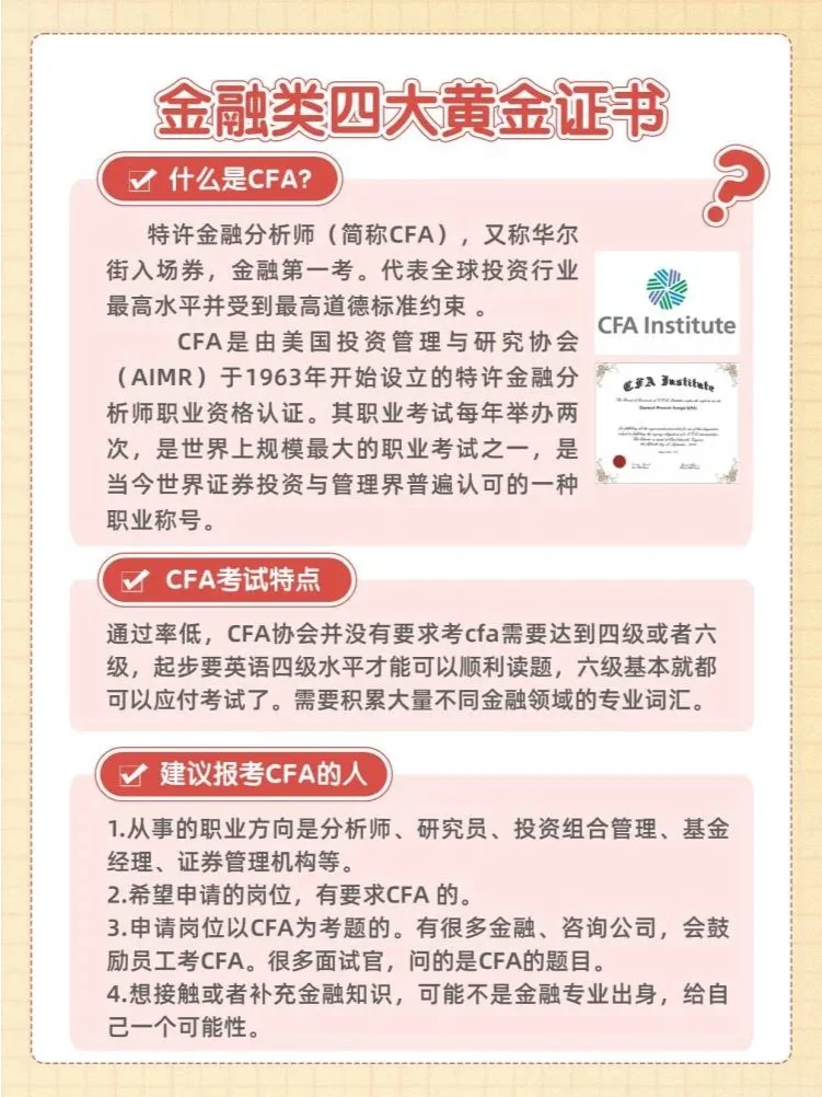金融行業(yè)4大熱門證書:CPA、CFA、ACCA、FRM