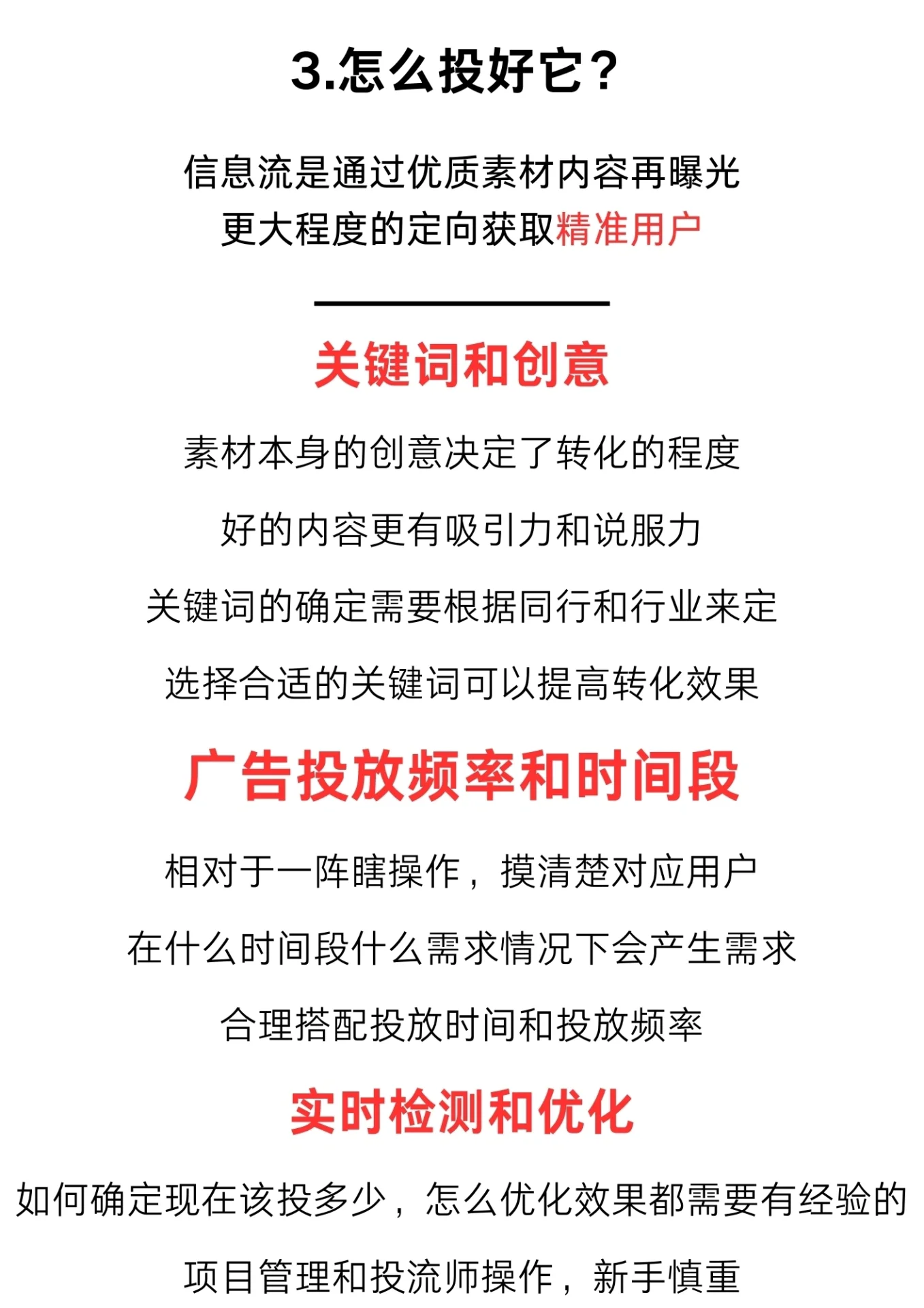 ? 老實說,作為第二方公司,我們的服務(wù)范圍包括代理運(yùn)營、種草、品牌提案撰寫、公關(guān)維護(hù)、電子商務(wù)等。最令人頭疼和耗能的也是信息流 ? 賺不了多少錢,信息流本身也沒有盈利潛力。更多的是為種草業(yè)務(wù)添磚加瓦,實現(xiàn)轉(zhuǎn)型,但投入的人力并不比種草少。取悅他人很難,但必須做到 [Fading R]做信息流,有幾件事每天都不可或缺 每日反饋,總結(jié)和回顧昨天的計劃,并為今天做計劃。作為一名合格的優(yōu)化工程師,一個人應(yīng)該有足夠的經(jīng)驗來應(yīng)對各種品牌需求和變化,同時始終計算預(yù)算和數(shù)據(jù),以及如何及時添加和刪除它們 【喝奶茶R】對于品牌,尤其是種草達(dá)人來說,如果不投入市場,自己的報告筆記的意義就會降低一半。此外,信息流的應(yīng)用越來越頻繁,在這一領(lǐng)域也越來越流行。與專家一起種草的預(yù)算甚至可以分?jǐn)?0% ? 對于新品牌來說,最初的重點更多是擴(kuò)大其覆蓋范圍,未來可能會更多地考慮在更精確的領(lǐng)域進(jìn)行垂直定位