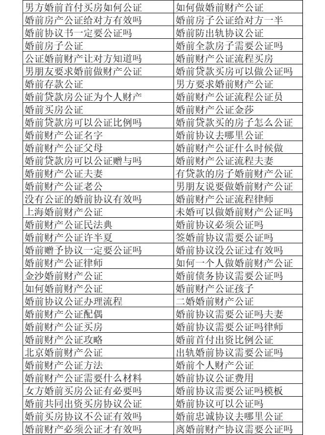 婚前協(xié)議需要公證嗎 如果婚前財產(chǎn)協(xié)議不涉及財產(chǎn)權(quán)利的分割或變更,僅涉及雙方工資收入和存款的約定,是否公證不影響協(xié)議的效力和后續(xù)履行。 只要條款內(nèi)容合法,雙方自愿簽署,婚前協(xié)議無需公證,仍然有效; 建議對贈與財產(chǎn)和汽車的相關(guān)條款進(jìn)行公證,以防止對方在贈與財產(chǎn)履行完成之前要求撤銷。 建議申請公證。公證不僅增強了證據(jù)的證明力,還為您的協(xié)議增加了一層保護(hù)和保險。 如果對方購買的房子有協(xié)議,不能加名字,是否應(yīng)該公證 律師:不管是婚前購買還是婚后購買,短期內(nèi)都無法完成過戶登記。有必要辦理公證。因為經(jīng)過公證的協(xié)議一般不會被撤銷! 所以,為了有保障,每個人都可以起草婚前財產(chǎn)、婚前協(xié)議、夫妻財產(chǎn)協(xié)議、贈與協(xié)議等,并到公證處進(jìn)行公證; 南京律師徐璐認(rèn)為,與其糾結(jié)是否公證,不如關(guān)注協(xié)議中的“協(xié)議條款”和“協(xié)議效力”等關(guān)鍵問題! 4、 相關(guān) 婚前財產(chǎn)公證 有必要對婚前財產(chǎn)進(jìn)行公證嗎 婚前財產(chǎn)公證可以由一個人完成嗎 婚前財產(chǎn)協(xié)議需要公證嗎 婚前財產(chǎn)公證流程 如何公證新娘的婚前財產(chǎn) 婚前財產(chǎn)公證費 婚前協(xié)議需要公證嗎 婚前忠誠協(xié)議需要公證嗎 婚前財產(chǎn)需要公證嗎 如何辦理婚前財產(chǎn)公證 婚前我需要公證我的個人財產(chǎn)嗎 婚前公證具有法律效力嗎 雙方都需要對婚前財產(chǎn)進(jìn)行公證嗎 婚前財產(chǎn)公證有用嗎 如何辦理婚前財產(chǎn)公證 婚前財產(chǎn)公證是什么意思 婚前財產(chǎn)公證模板 婚前還是婚后進(jìn)行財產(chǎn)公證 婚前將公證財產(chǎn)一分為二有用嗎 女方婚前貸款購房財產(chǎn)公證 婚前貸款住房需要公證嗎 婚前協(xié)議是否未經(jīng)公證且有效 婚前財產(chǎn)協(xié)議公證 杭州婚前財產(chǎn)公證 婚前買房公證有效嗎 公證男子婚前貸款買房的利弊 婚前我們需要對方做財產(chǎn)公證嗎 貸款住房可以辦理婚前財產(chǎn)公證嗎 婚前協(xié)議公證