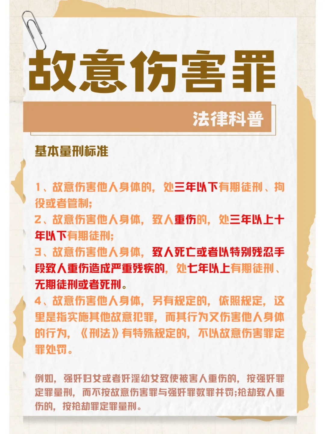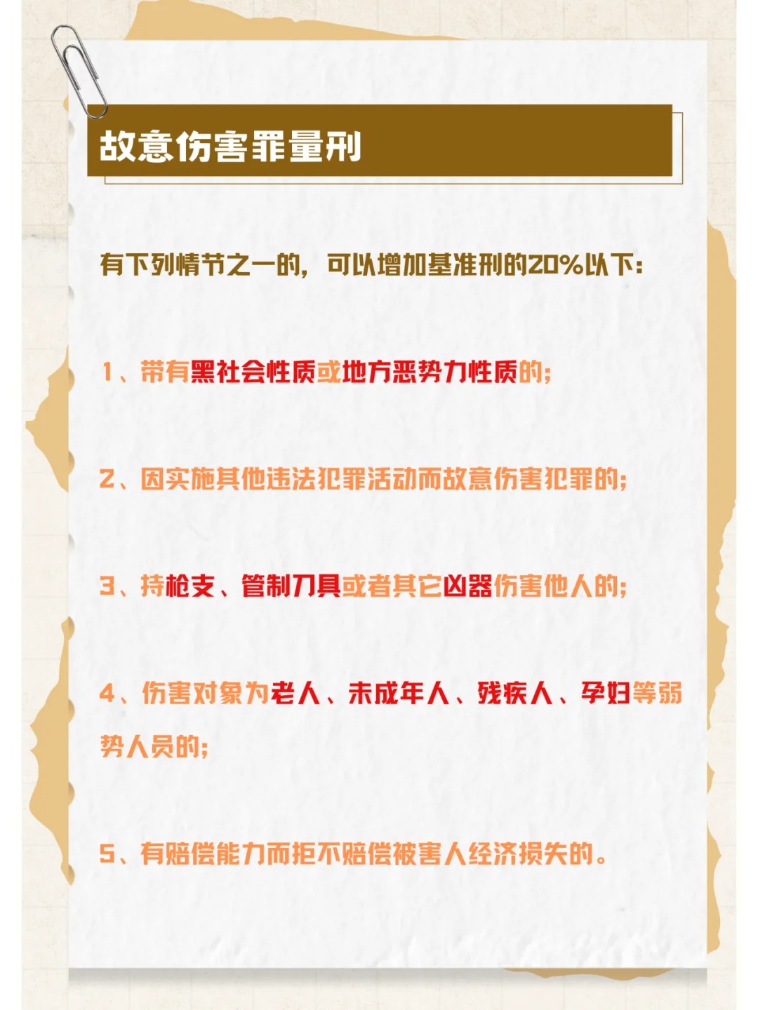 《刑法》第二百三十四條規(guī)定,故意傷害他人身體的,處三年以下有期徒刑、拘役或者管制。 犯前款罪,致人重傷的,處三年以上十年以下有期徒刑;致人死亡或者以特別殘忍手段致人重傷造成嚴(yán)重殘疾的,處十年以上有期徒刑、無(wú)期徒刑或者死刑。本法另有規(guī)定的,依照規(guī)定。 其中已滿14周歲不滿16周歲的自然人有故意傷害致人重傷或者死亡行為的,應(yīng)當(dāng)負(fù)刑事責(zé)任。 公安機(jī)關(guān)立案追溯標(biāo)準(zhǔn) 第二十八條 被害人傷情構(gòu)成輕傷、重傷或者死亡,需要追究犯罪嫌疑人刑事責(zé)任的,依照《中華人民共和國(guó)刑事訴訟法》的有關(guān)規(guī)定辦理。 第二十九條 根據(jù)《中華人民共和國(guó)刑法》第十三條及《中華人民共和國(guó)刑事訴訟法》第十五條第一項(xiàng)規(guī)定,對(duì)故意傷害他人致輕傷,情節(jié)顯著輕微、危害不大,不認(rèn)為是犯罪的,以及被害人傷情達(dá)不到輕傷的,應(yīng)當(dāng)依法予以治安管理處罰。 輕傷指各種致傷因素所致的原發(fā)性損傷或者由原發(fā)性損傷引起的并發(fā)癥,未危及生命;遺留組織器官結(jié)構(gòu)、功能輕度、中度損害或者影響容貌及明顯影響容貌。具體損傷程度依據(jù)《人體損傷程度鑒定標(biāo)準(zhǔn)》鑒定。 故意傷害罪量刑標(biāo)準(zhǔn): 1、構(gòu)成故意傷害罪的,根據(jù)下列情形在相應(yīng)的幅度內(nèi)確定量刑起點(diǎn): (1)故意傷害致一人輕傷的,在二年以下有期徒刑、拘役幅度內(nèi)確定量刑起點(diǎn)。 (2)故意傷害致一人重傷的,在三年至五年有期徒刑幅度內(nèi)確定量刑起點(diǎn)。 (3)以特別殘忍手段故意傷害致一人重傷,造成六級(jí)嚴(yán)重殘疾的,在十年至十三年有期徒刑幅度內(nèi)確定量刑起點(diǎn)。依法應(yīng)當(dāng)判處無(wú)期徒刑以上刑罰的除外。 2、在量刑起點(diǎn)的基礎(chǔ)上,根據(jù)傷害后果、傷殘等級(jí)、手段殘忍程度等其他影響犯罪構(gòu)成的犯罪事實(shí)增加刑罰量,確定基準(zhǔn)刑。 故意傷害致人輕傷的,傷殘程度可以在確定量刑起點(diǎn)時(shí)考慮,或者作為調(diào)節(jié)基準(zhǔn)刑的量刑情節(jié)。 3、構(gòu)成故意傷害罪的,綜合考慮故意傷害的起因、手段、危害后果、賠償諒解等犯罪事實(shí)、量刑情節(jié),以及被告人的主觀惡性、人身危險(xiǎn)性、認(rèn)罪悔罪表現(xiàn)等因素,決定緩刑的適用。 如果您有類似的法律問(wèn)題需要幫助,歡迎隨時(shí)聯(lián)系我們。