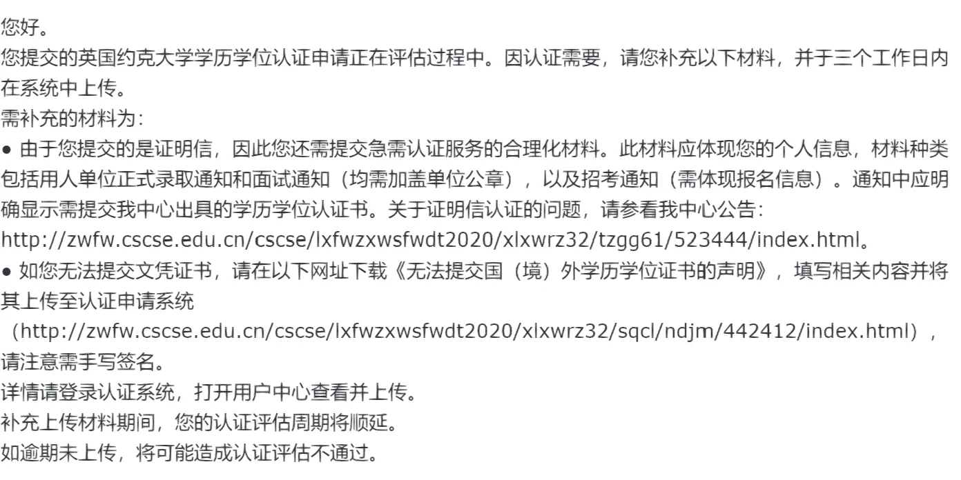 可能平臺極其智慧就給我推無畢業(yè)證學歷認證,于是我申請成績單并且拿到電子版后立刻去申請學歷認證,然后就失敗啦 2023年1.月1.日之前沒有畢業(yè)證的uu們要想提前認證,必須需要單位的錄取通知面試通知招考通知,就是單位出證明說非常需要這個能證明咱學歷的認證書。2023年之后只對西班牙意大利開放無畢業(yè)證認證。 像我這種,只是想快點被認證的uu不要再去弄啦,整了也白整,還得等有工作或者等畢業(yè)證來[失望R電子版的也可以)