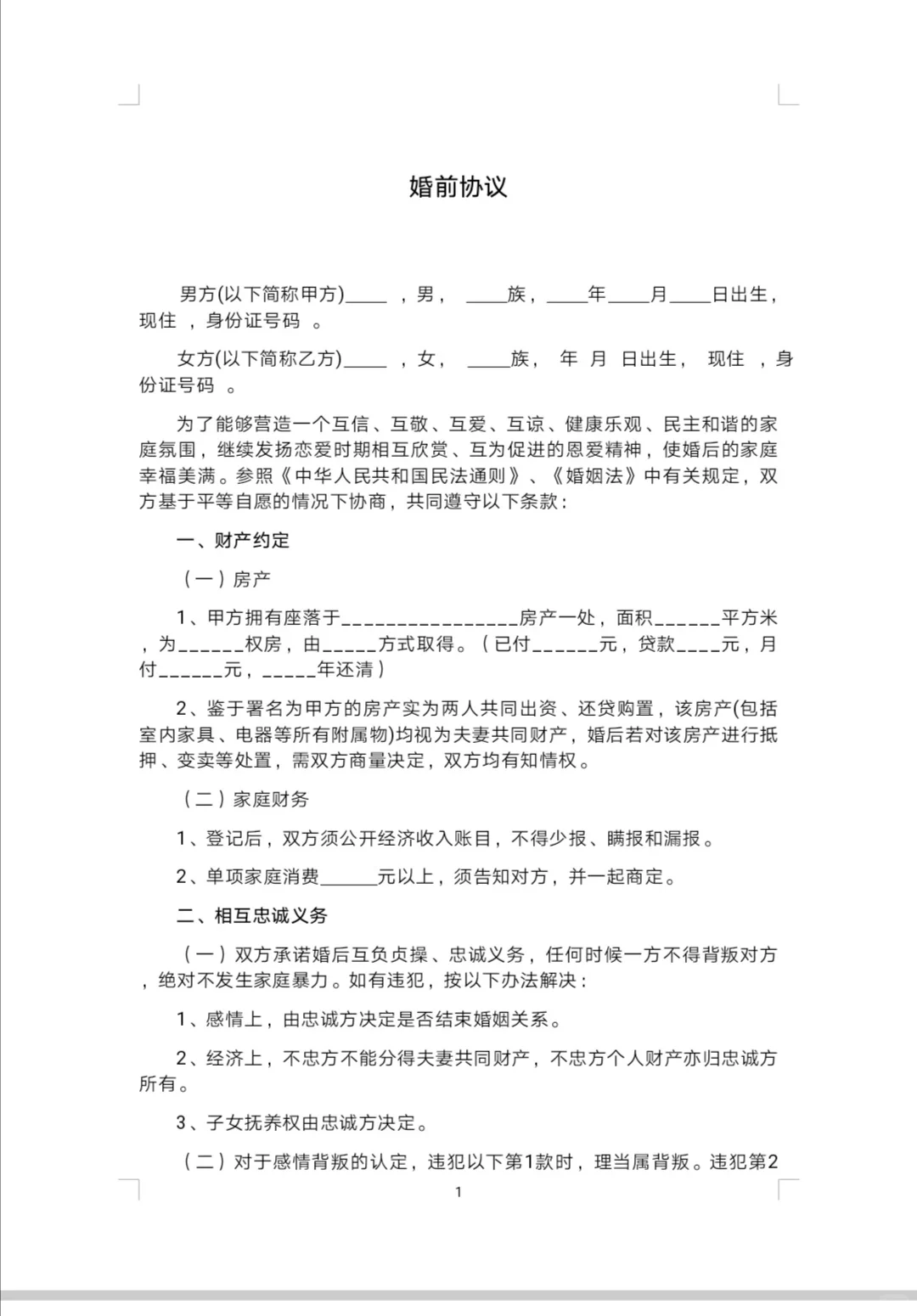 婚前協(xié)議模板