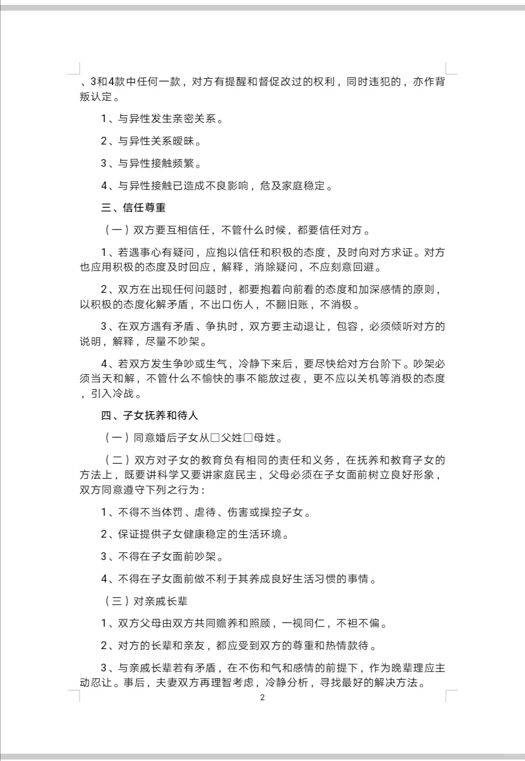 婚前協(xié)議書模板僅供參考 需要注意的是:①結(jié)婚前的協(xié)議書必須是以書面的方式呈現(xiàn),注意,只有以書面的方式呈現(xiàn)出來的協(xié)議書,才能夠具有法律的效力。②男女雙方自意在婚前協(xié)議書上簽字,婚前協(xié)議書是雙方簽字即有效?;榍皡f(xié)議書也可以進行公證,公證過得婚前協(xié)議書更具有有效性,當然,不公證也是可以的,因為沒有經(jīng)過公證的婚前協(xié)議書也是具有法律效力的。③單獨約定附條件凈身出戶需具體化如出現(xiàn)什么條件放棄具體的財產(chǎn)內(nèi)容。