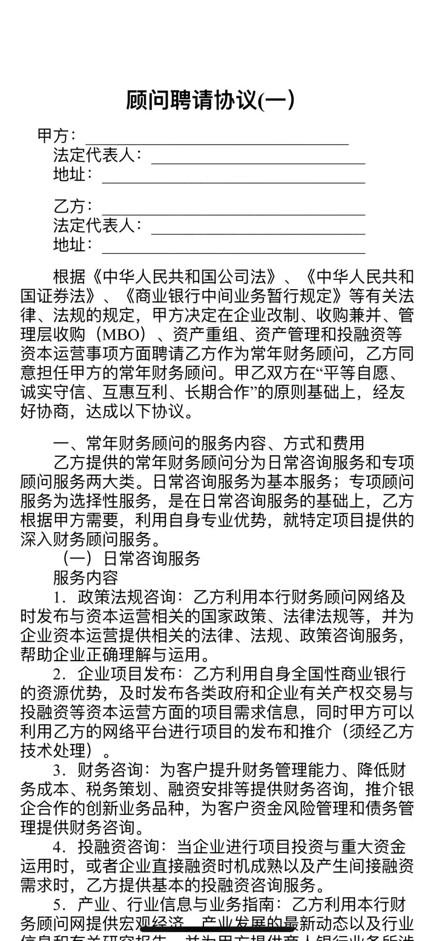 顧問(wèn)聘請(qǐng)協(xié)議,合同模板