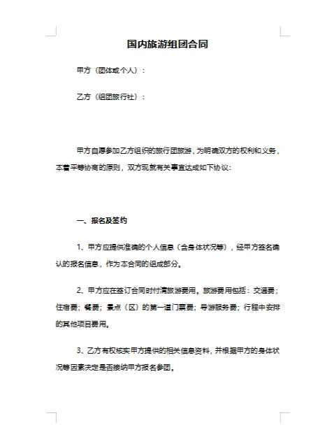 律師起草審核的國(guó)內(nèi)旅游組團(tuán)協(xié)議合同模板