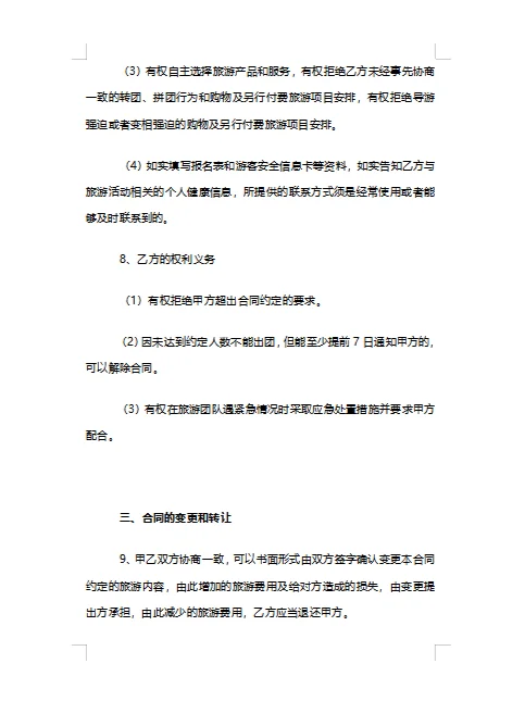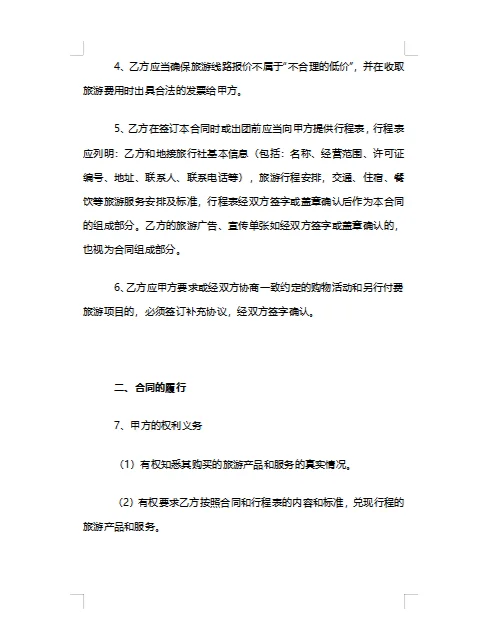 起草國(guó)內(nèi)旅游集團(tuán)合同協(xié)議有哪些秘密,讓您的旅行團(tuán)更加可靠! 大家好,我是你們的小紅書(shū)法與法律博主。今天小編就和大家聊一聊國(guó)內(nèi)旅游組團(tuán)合同協(xié)議起草的要點(diǎn)!你想要一個(gè)愉快和安全的旅行體驗(yàn)嗎你一定不能錯(cuò)過(guò)這個(gè)充滿寶貴信息的分享! 要點(diǎn)一:明確雙方信息和群組細(xì)節(jié) 在合同開(kāi)始時(shí),應(yīng)明確列出甲方(旅行社)和乙方(游客)的基本信息,以確保雙方身份清楚。接下來(lái),詳細(xì)描述旅游團(tuán)的詳細(xì)情況,包括團(tuán)名、出發(fā)日期、返回日期、行程安排等,讓游客對(duì)整個(gè)行程有一個(gè)全面的了解。 要點(diǎn)2:成本明細(xì)和付款方式 合同必須詳細(xì)說(shuō)明旅游費(fèi)用,包括團(tuán)費(fèi)、門(mén)票費(fèi)、餐飲費(fèi)、住宿費(fèi)等,以確保游客對(duì)每筆費(fèi)用的目的地有清楚的了解。另外,請(qǐng)說(shuō)明付款方式,是全額付款還是分期付款它應(yīng)該寫(xiě)得清楚,以避免在后期發(fā)生爭(zhēng)議。 要點(diǎn)三:服務(wù)標(biāo)準(zhǔn)和質(zhì)量保證 在合同中明確規(guī)定旅行社提供的服務(wù)標(biāo)準(zhǔn),如導(dǎo)游的資質(zhì)和經(jīng)驗(yàn)、車輛的舒適性和安全性、住宿條件等。同時(shí),它強(qiáng)調(diào)旅行社對(duì)服務(wù)質(zhì)量的承諾,確保游客在旅行中享受高質(zhì)量的服務(wù)。 要點(diǎn)四:退改政策與違約責(zé)任 提供詳細(xì)的往返政策清單,包括條件、費(fèi)用等,為游客調(diào)整行程提供明確依據(jù)。同時(shí),明確雙方的違約責(zé)任。旅行社未按約定提供服務(wù),或者游客未按時(shí)赴約的,必須有明確的違約責(zé)任條款。 要點(diǎn)五:保險(xiǎn)和安全保護(hù) 在合同中,明確旅行社為游客購(gòu)買(mǎi)的保險(xiǎn)類型和金額,使他們?cè)诼眯兄懈邪踩?。同時(shí),它強(qiáng)調(diào)旅行社的安全措施,如應(yīng)急計(jì)劃、緊急聯(lián)系方式等,以確保游客在發(fā)生緊急情況時(shí)能夠得到及時(shí)有效的幫助。 要點(diǎn)六:爭(zhēng)議解決方法 不要忘記在合同中規(guī)定爭(zhēng)議解決方法,如談判、調(diào)解或訴訟。這樣,當(dāng)雙方發(fā)生爭(zhēng)端時(shí),可以迅速找到解決方案,避免沖突升級(jí)。 提示:在起草合同時(shí),必須遵守相關(guān)法律、法規(guī)和行業(yè)規(guī)范,以確保合同內(nèi)容合法合規(guī)。同時(shí),建議聘請(qǐng)專業(yè)律師對(duì)合同進(jìn)行審查,確保所有條款嚴(yán)格完整。 好了,今天的分享就到這里啦!希望這些要點(diǎn)能幫助您起草一份安全可靠的國(guó)內(nèi)旅游團(tuán)協(xié)議,讓您的旅行更加愉快和放心!記得喜歡嗎最喜歡的是什么哦,下次你需要的時(shí)候可以很快找到它!