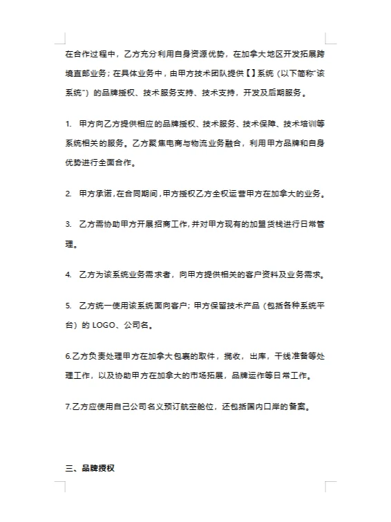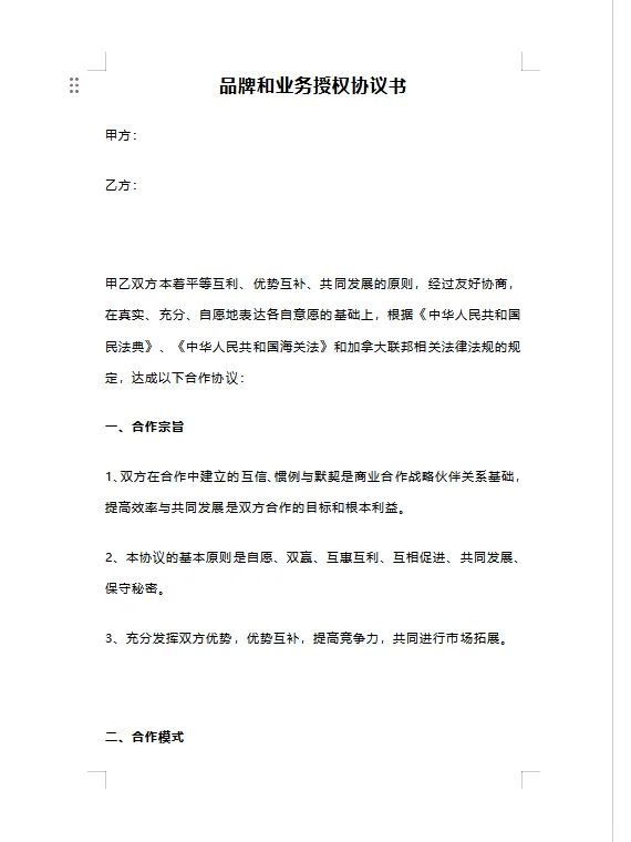 律師起草審核的品牌和業(yè)務授權(quán)協(xié)議合同模板