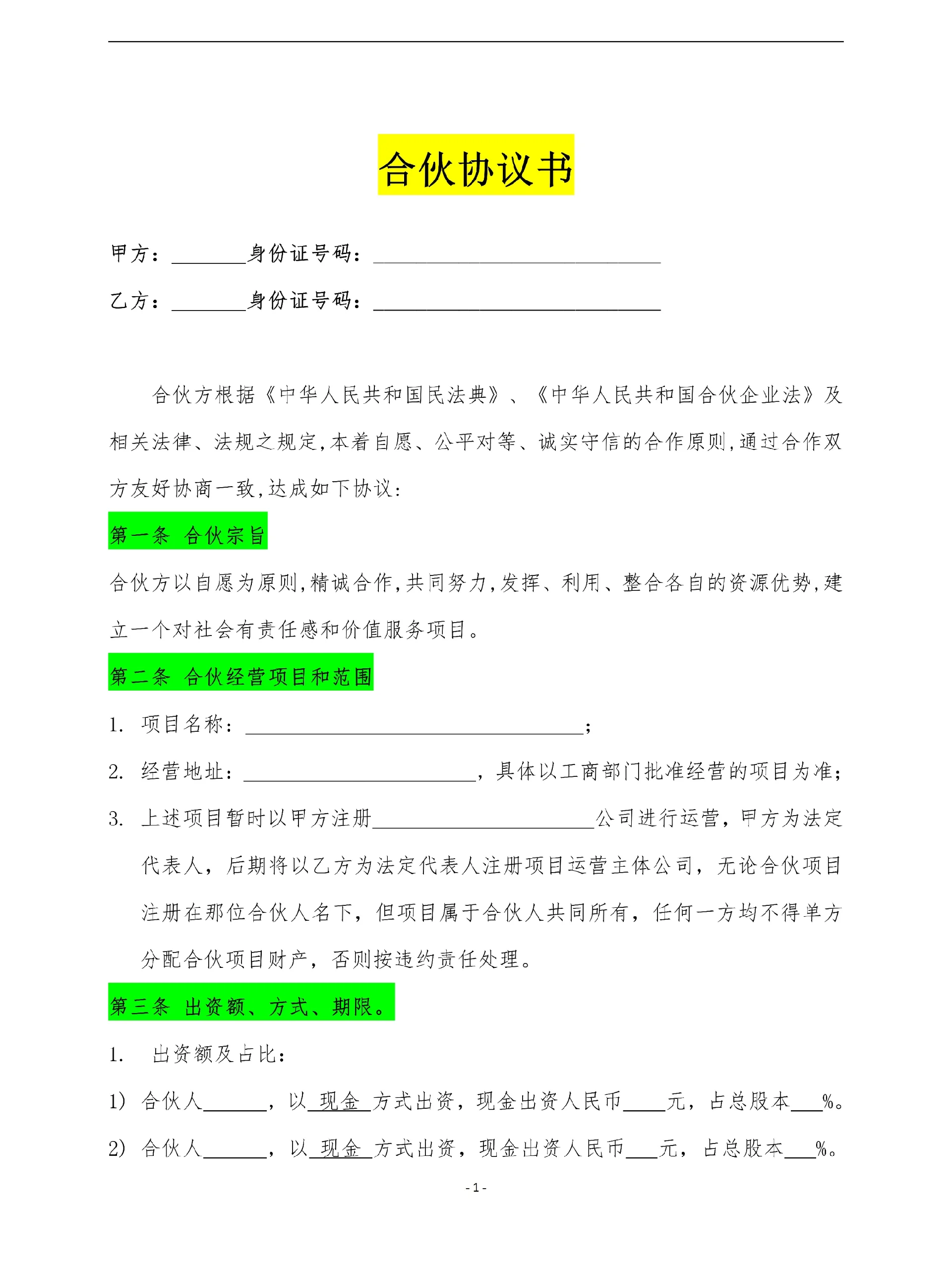 合伙協(xié)議電子版項(xiàng)目合伙協(xié)議書合同范本模板