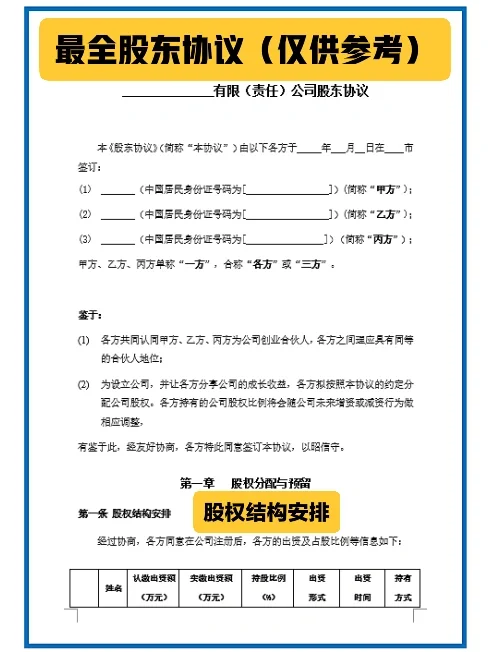 創(chuàng)業(yè)必備之最全的股東協(xié)議