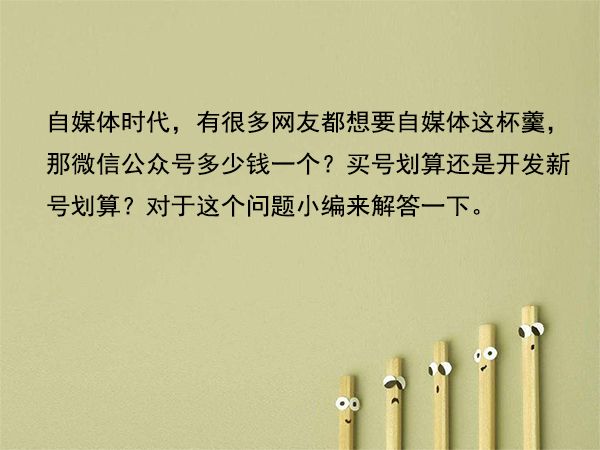 自媒體時代,有很多網(wǎng)友都想要自媒體這杯羹,那微信公眾號多少錢一個?買號劃算還是開發(fā)新號劃算?對于這個問題小編來解答一下。