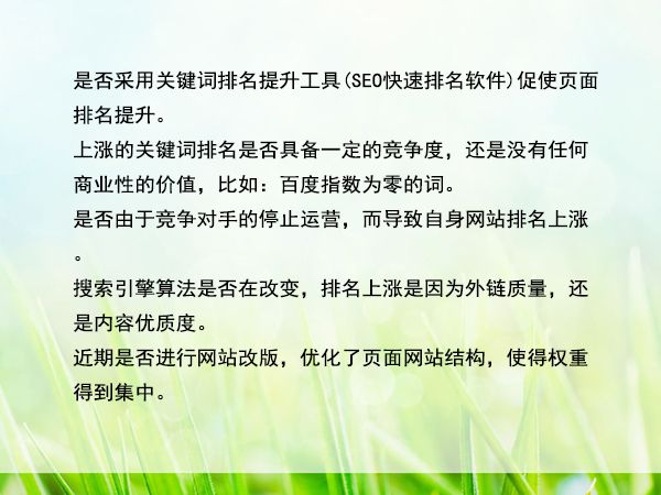 1.是否采用關(guān)鍵詞排名提升工具(SEO快速排名軟件)促使頁(yè)面排名提升。