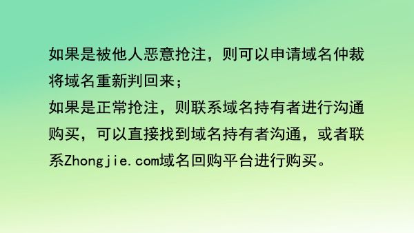 一、如果是被他人惡意搶注,則可以申請(qǐng)域名仲裁將域名重新判回來;