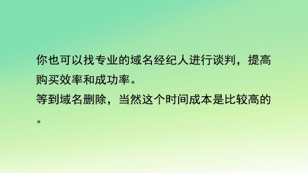 你也可以找專業(yè)的域名經(jīng)紀(jì)人進(jìn)行談判,提高購(gòu)買效率和成功率。