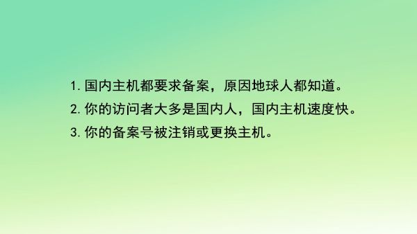 1.國內(nèi)主機(jī)都要求備案,原因地球人都知道。