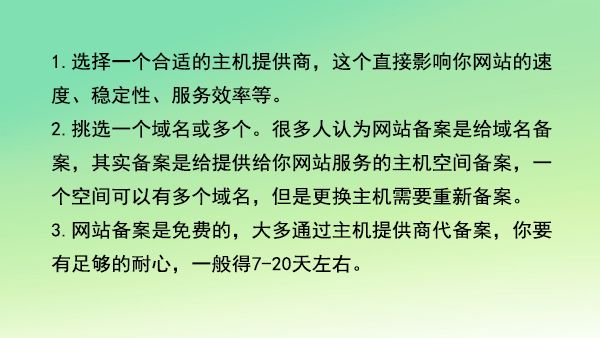 3.網(wǎng)站備案是免費(fèi)的,大多通過主機(jī)提供商代備案,你要有足夠的耐心,一般得7-20天左右。