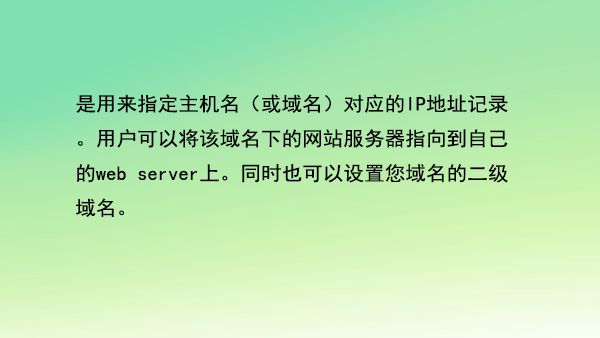 是用來指定主機(jī)名(或域名)對(duì)應(yīng)的IP地址記錄。用戶可以將該域名下的網(wǎng)站服務(wù)器指向到自己的web server上。同時(shí)也可以設(shè)置您域名的二級(jí)域名。