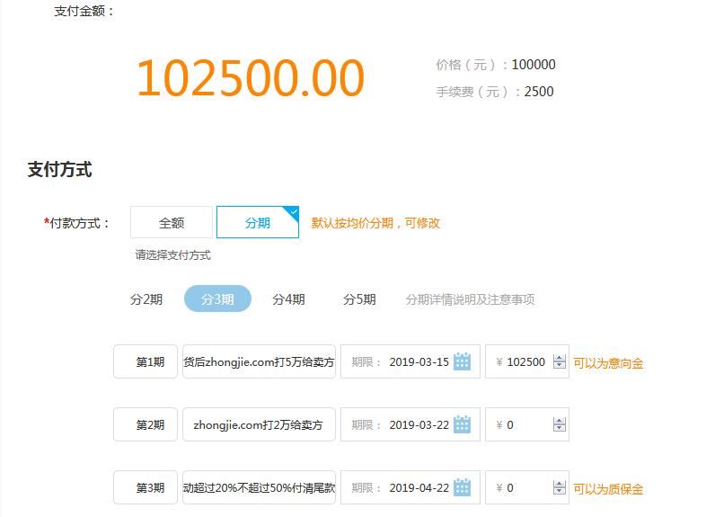 3.選擇分期后,會有默認(rèn)分期價格和期限,請根據(jù)雙方約定修改。