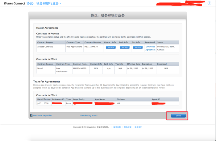 14、點(diǎn)Done后即完成所有App轉(zhuǎn)讓步驟,大概等4分鐘左右就能在App Store看到新的信息了
